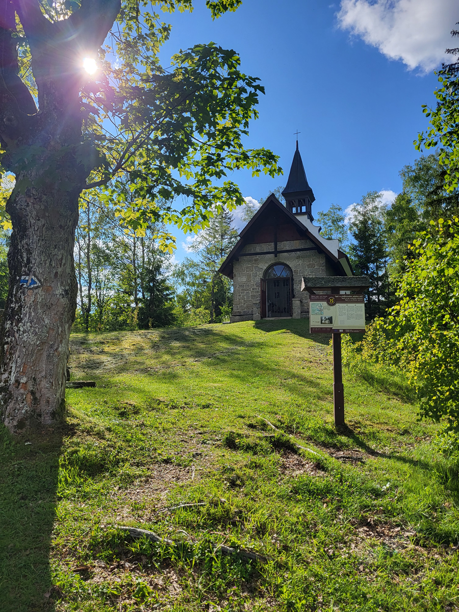 Cesta ubíhá celkem rychle, už úplně bez deště a výhledy jsou krásný. Já mám prostě Šumavu moc rád. S pár pauzama na občerstvení dorážíme do Strážného kolem druhé a chceme si dát rybu v rybárně, ale rybárna vaří jenom o víkendech (saprlote) a tak jdeme na oběd k Sousedům. Jídlo dobré, pivo taky a obsluha velmi fajn.