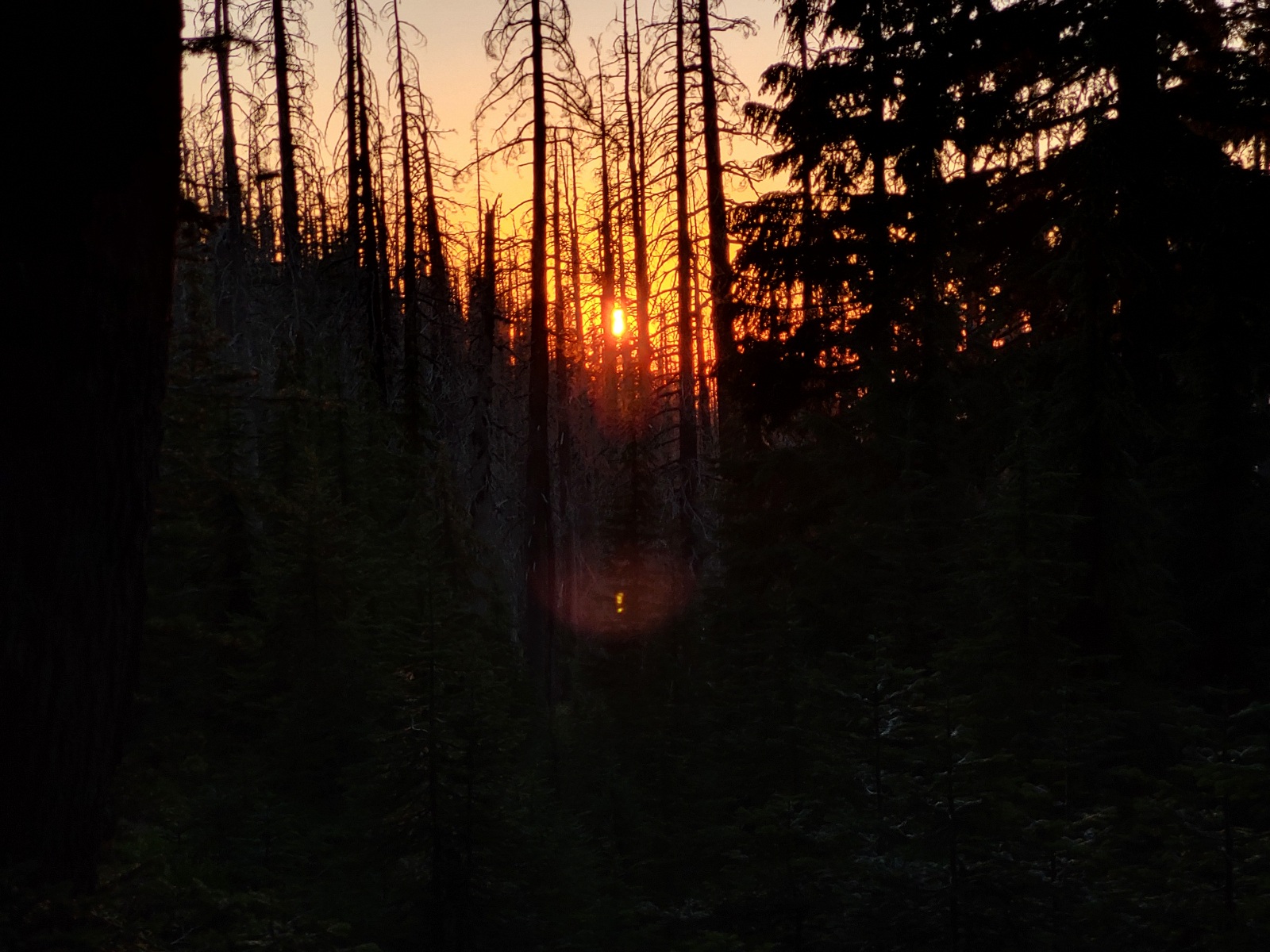 Opět se jde lesem, takže žádný výhledy. Občas skrz stromy zahlednu nějakou horu.