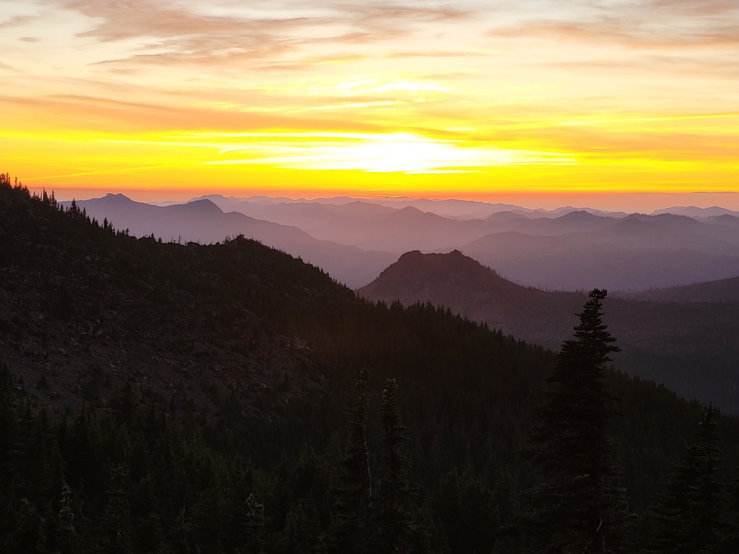 Pokračuji dál a chvíli před soumrakem nacházím místo a kempuji. O kus dál je Sign Tap. Jdeme se spolu podívat na západ slunce. Je tu úžasný výhled. Povídáme si novinky. Od back's lake jsme se neviděli.