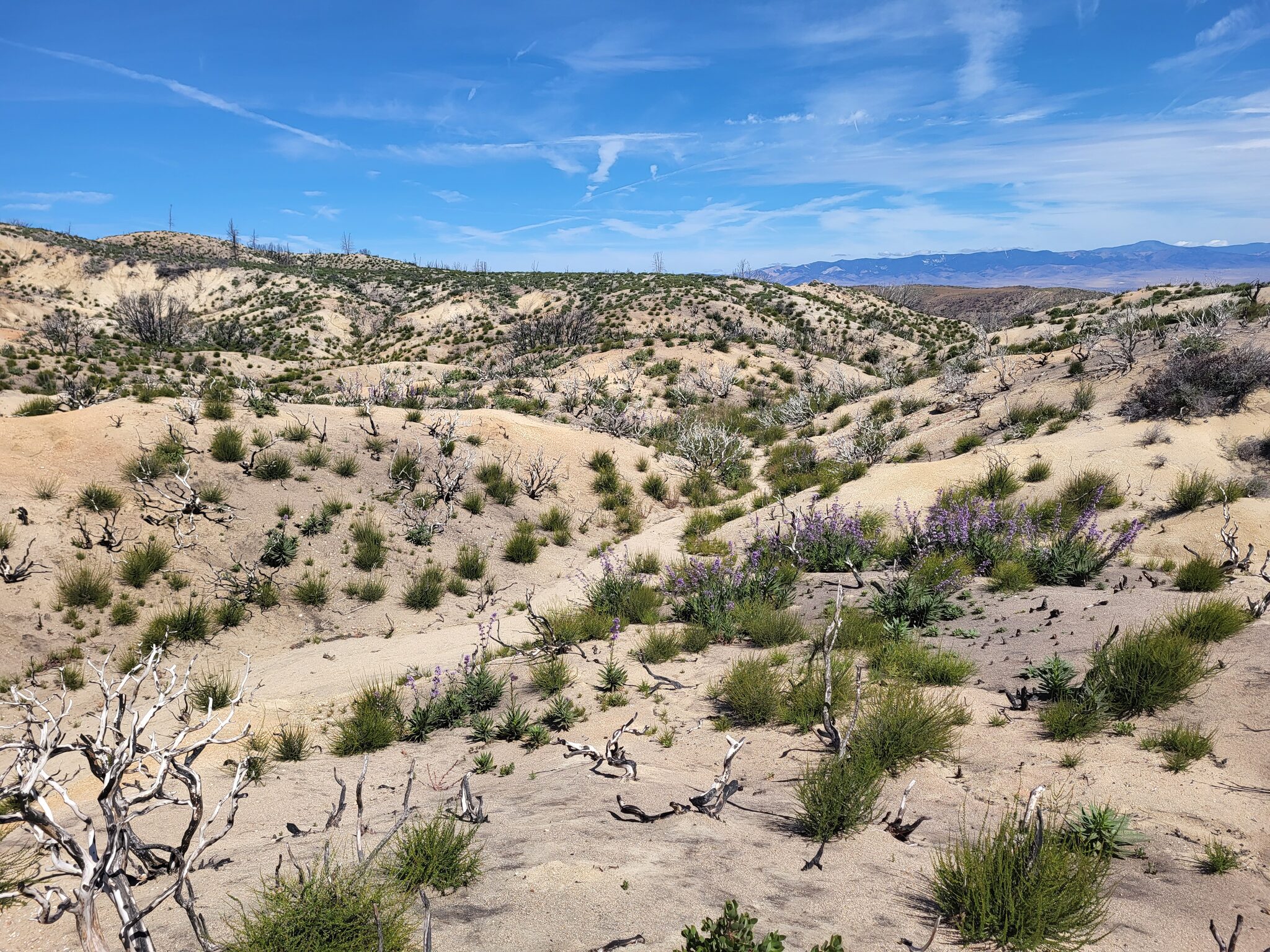 Procházíme spálenou oblasti a na obzoru už vidím poušť. Zítra dorazíme do Hikertownu a pak už 50 majlí poušti do Tehachapi.
