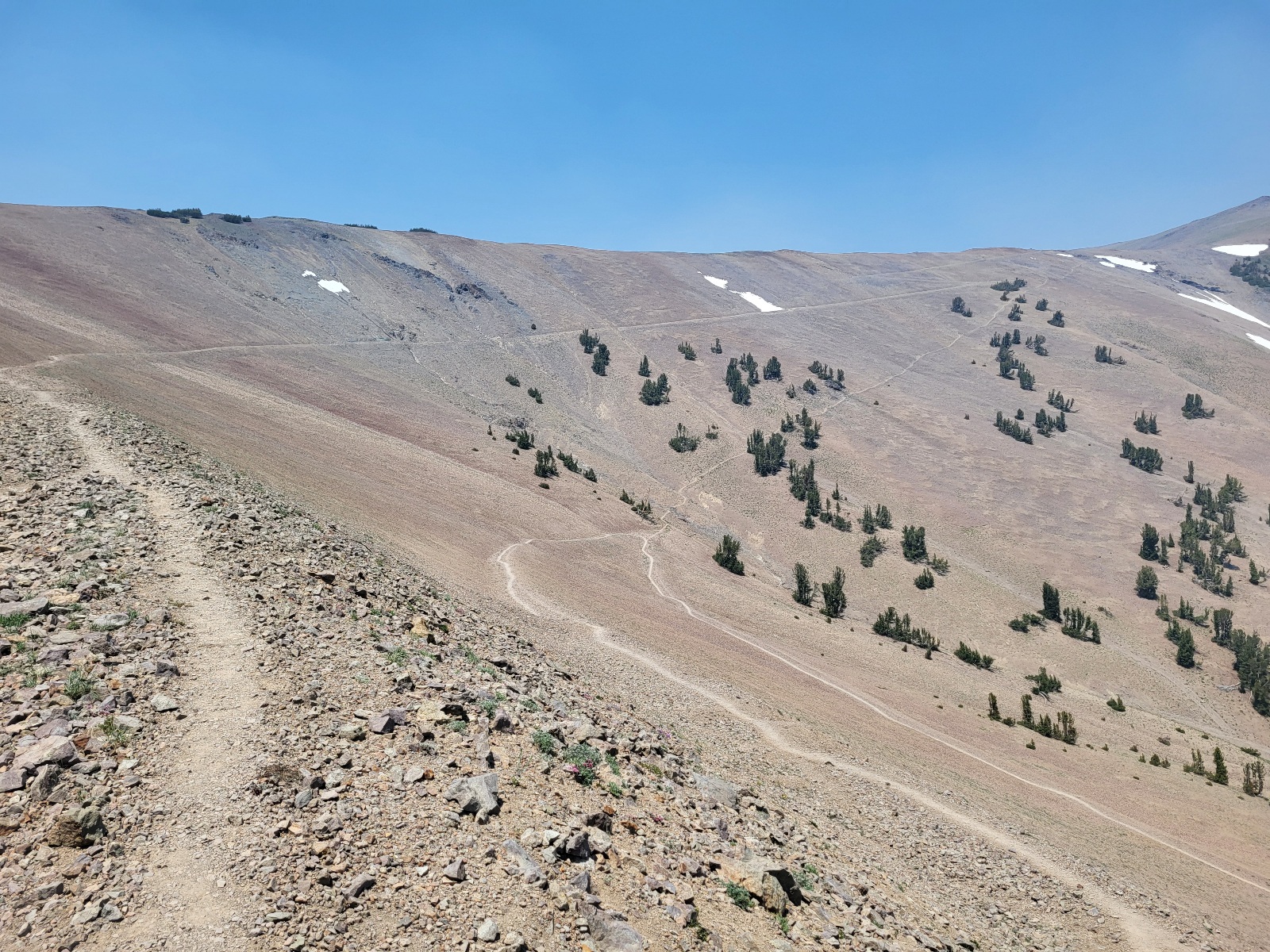 Po cca 10 majlích se trail konečně odklání od potoků a komáři postupně mizí. Díky bohu.