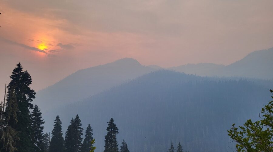 Kouř uz ráno ani nevnimám, asi jsem si už zvyk, protože naproti na kopci je vidět. Po cca hodině přicházím na parkoviště u highway 410, …