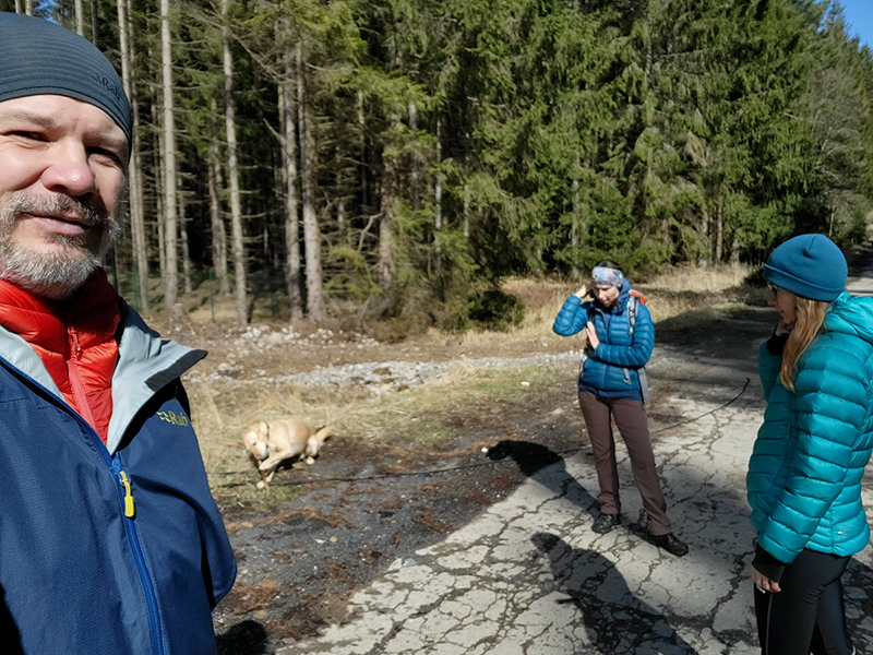 Vyzvedávám PaH po deváté na nádraží a v půl desaté nás nabírá Valda (ještě jednou děkujeme za odvozy :) ) a za chvíli nás vysazuje v Malé Vísce a vyrážíme na cestu. Burák je na stopovačcce a zdá se, že si to užívá také.