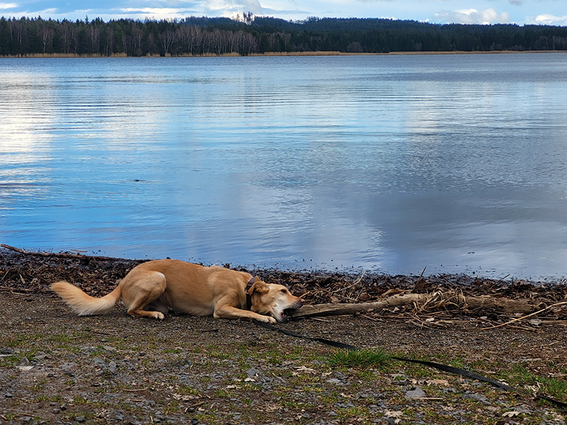Blížíme se k Padrtím a asi abychom si to pořádně užili se nad námi stahují mračna, déšť střídají kroupy, vítr nás bičuje a celkově si to velmi užíváme. K hořejšímu rybníku dorážíme navlhlí a vyfoukaní, ale 26km se počítá. Miška je borkyně - hned na poprvé! WHW dá v pohodě. A Burák to uťapal taky.