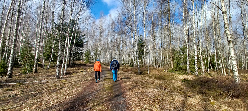 Za letištěm doprava a doleva, kolem Parmovy nádržky přes dopadovku Jordán až na rozcestí Kvaň. Tohle je jedno z mých nejoblíbenějších míst v Brdech. Ty břízy mají prostě něco do sebe.