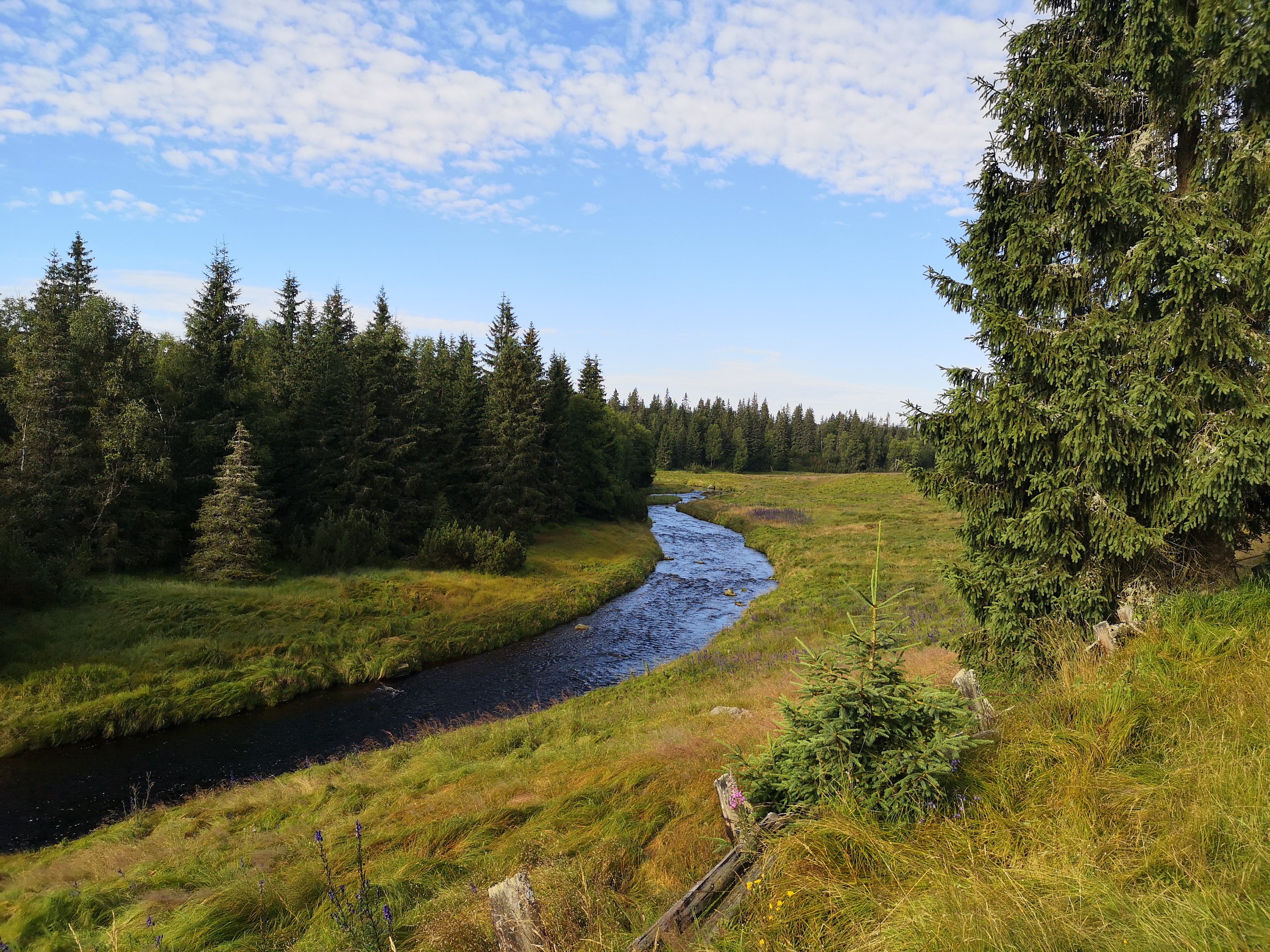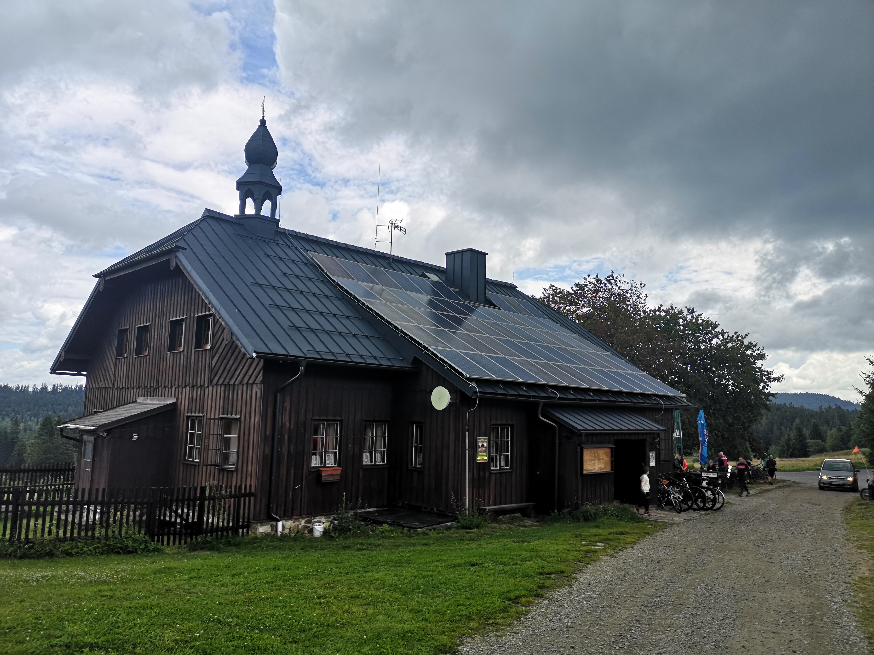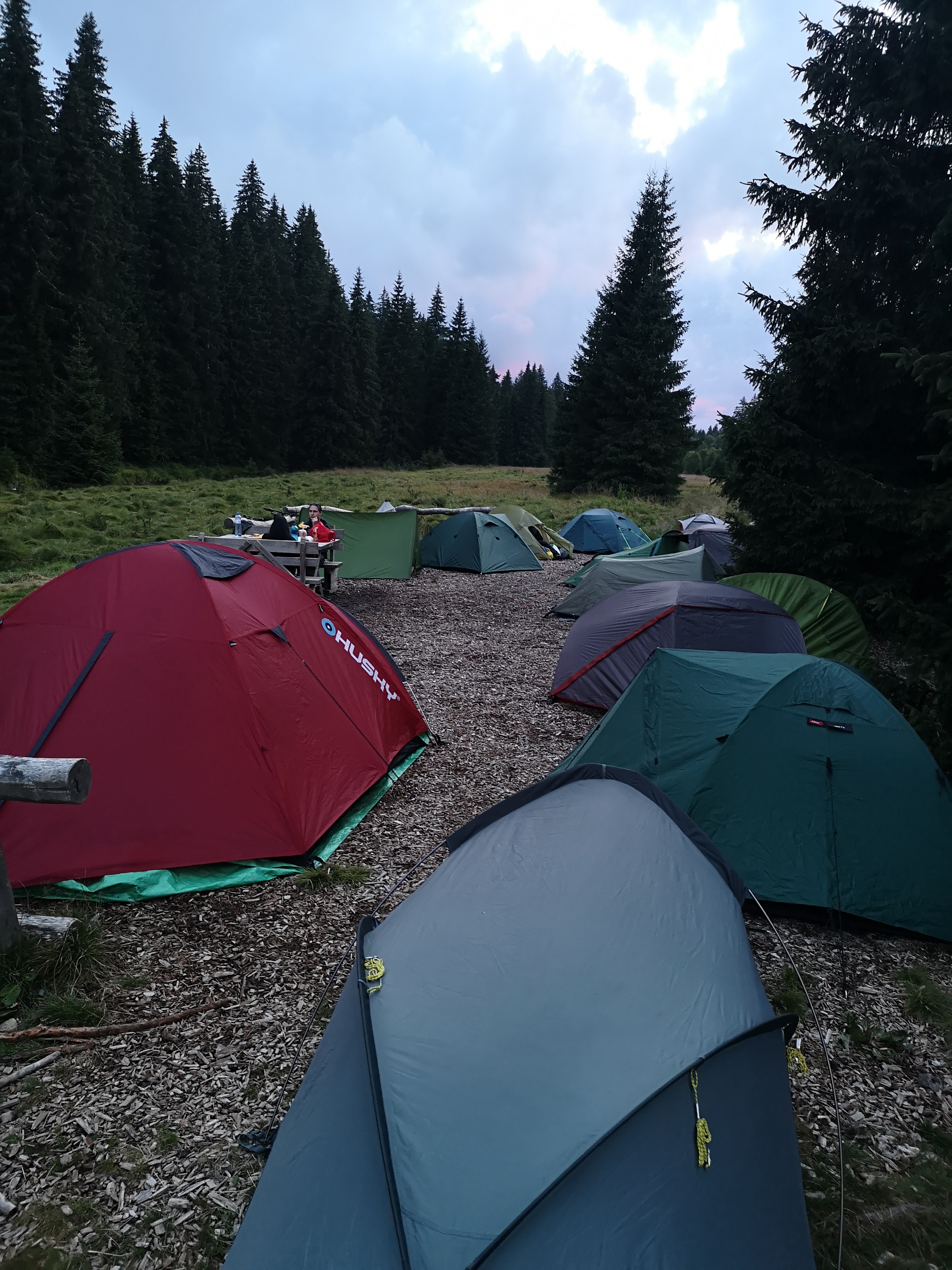 Ráno máme celkem brzy sraz a valíme do noviště Hůrka. Cesta je krásná. Po cestě se zajdeme podívat na Prášilské jezero a pak na oběd do Prášil, kde se potkáváme se žebráckými. Na nocoviště už jdeme víceméně společně. Stany jsou napadeny relativně neškodnými, ale otravnými muškami. Jdeme s Robem pro vodu, ale schyluje se k buřině a tak spěcháme zpět velmi zrychleně. Behěm chvíle to začne a tak jsme zahnáni do stanů a jdeme spát. Švy stanu jsem stále nezalepil a tak na mě v noci párkrát kápne, ale není to žádná tragédie.