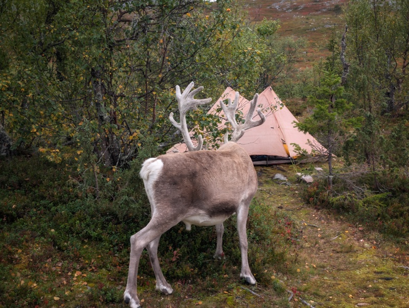 Po ceste dolů narazim na úžasné stádo sobů. Sleduju je asi 10 minut a je to krása.
