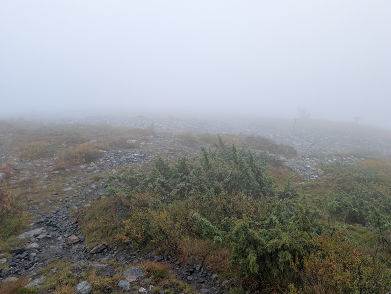 Balím a přidávám do kroku. Asi tak 10 minut, pak totiž přijde dalsi kopec. A znova začíná pršet . No nic, pouštím audio a sunu se dal. Škoda, ze je mlha, musely by tu byt super výhledy.