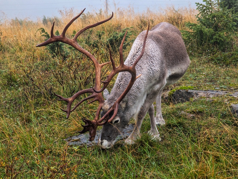 Je to cca 5 km, takze na pohodu. Po ceste potkávám úplně bily varianty sobiku. Zase prší ale vsechno kolem je nádherný.