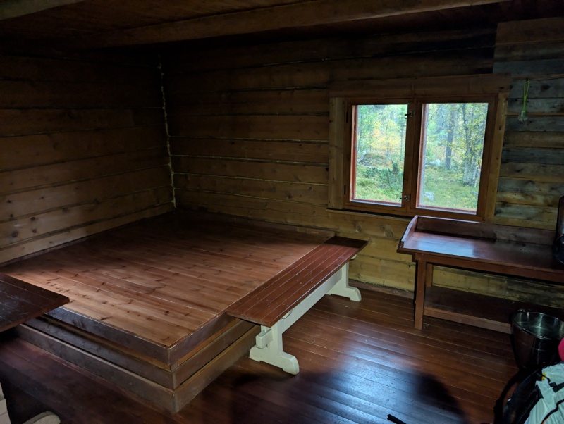 U chaty jsem po šesté. Je moc pekna, voňavá a prazdna. Zatápim v kamnech a začínám sušit věci. Po chvili se objevuji 2 finky. Kazda ma mimino jedno 6 měsíců a druhé 8. Ptám se, jestli mám uvolnit chatu, ale že prý ne, ze mají stan a chtějí spát venku. Přesto jim rikam, že kdyby si to rozmyslely, rád jim chatu uvolnim. Ale vypadá to na tvrdačky.