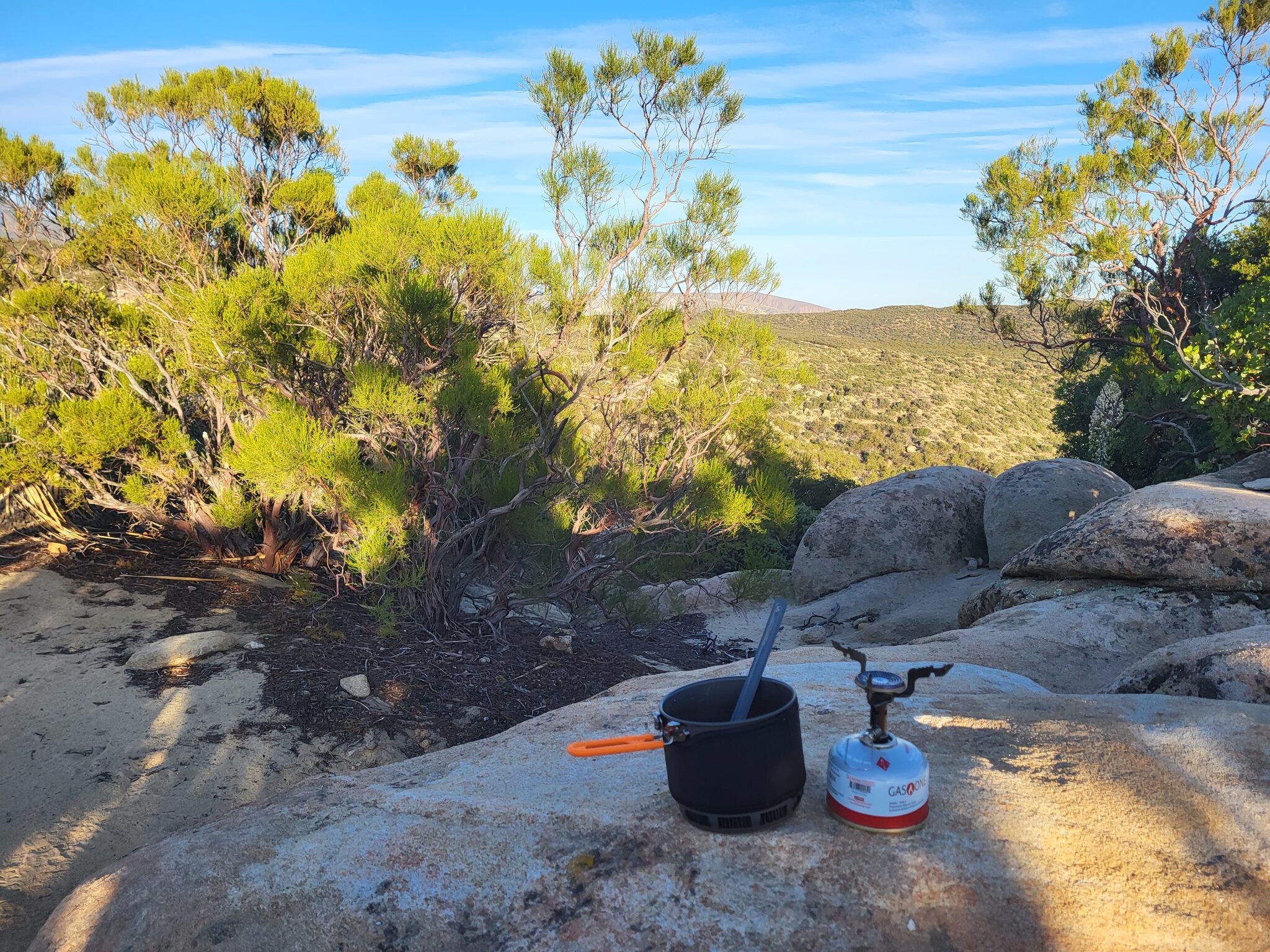 Nakonec to balím na míli 144. Vařím ramen, kupodivu kartuše ještě nezdechla. Je to moc hezký misto, ale ikdyž celkem krytý, profukuje to dost. Ten vítr mi začíná trochu vadit.