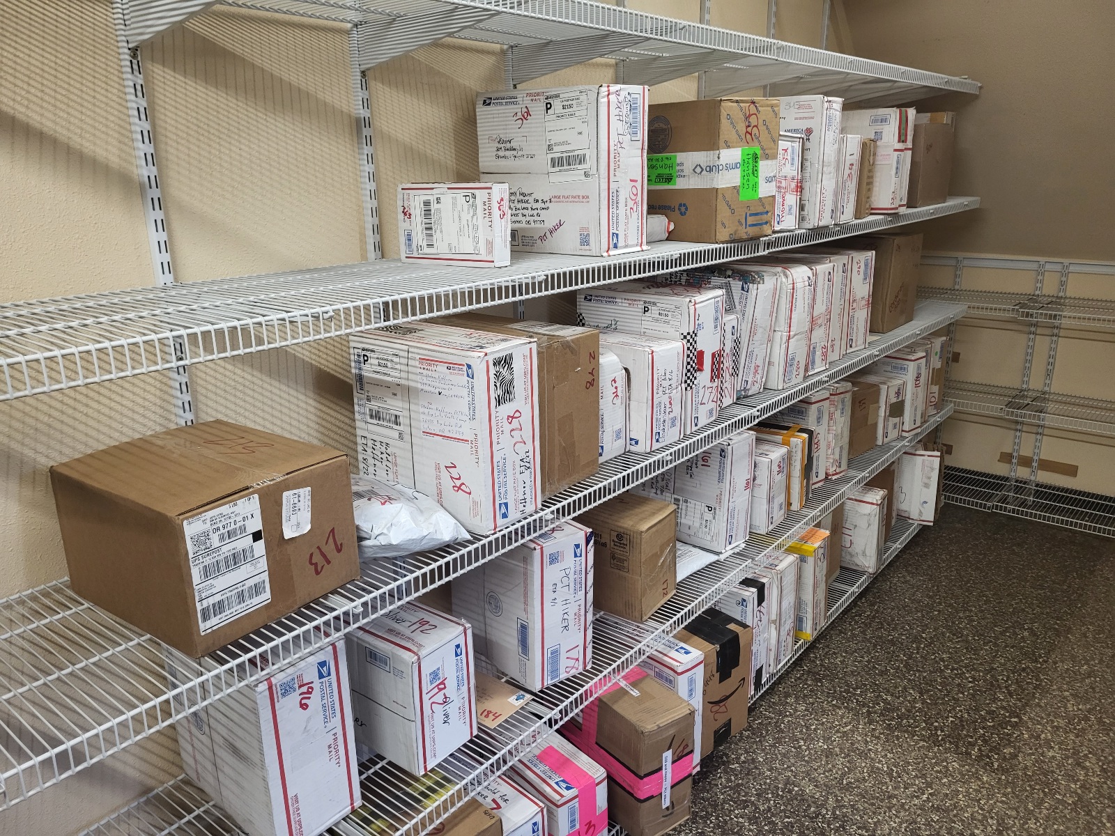 Pak si jdu dát sprchu a dám prát veci. Zároveň jdu hledat balíček s jídlem, který jsem si sem poslal z Bendu. Balíčků je tu spoustu a i ten můj. Mám jidlo na další cestu - hurá (ano, mam i další ovesnou kaši).