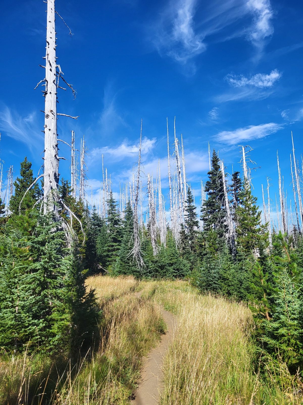 Je horko, ale jde se mi celkem fajn. Potkávám pár PCT dobrovolníků s pilama, co čistí les a uvolňují cesty od kmenů. Děkuju jim za to.