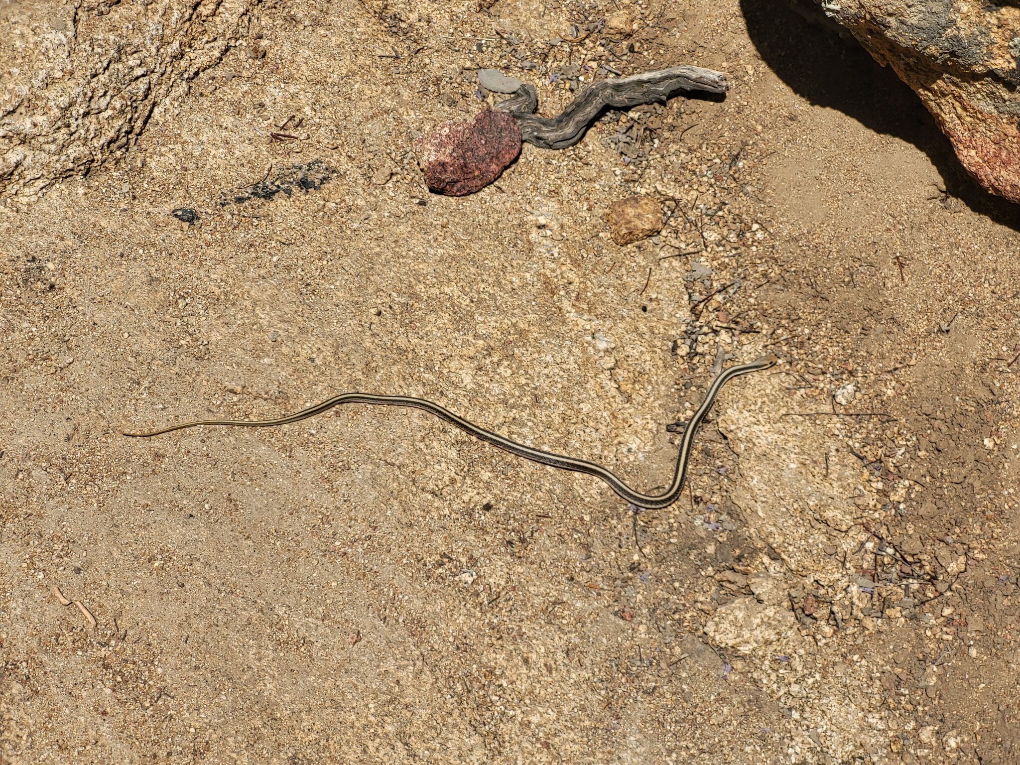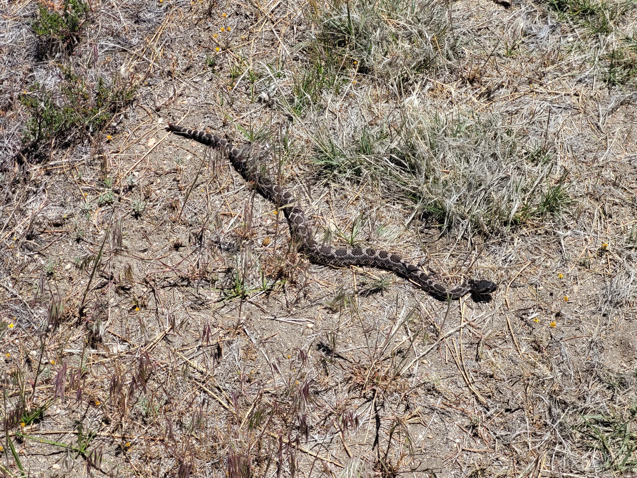 Pan velký šéf (nebyl to dospělák, cca 70 cm, ale ti jsou prý nejnebezpečnější, takže zadek mám sevřenej) naštěstí v klidu a nic nedělá. Stojím a říkám si co dál. Chrestýš nic, tak vytahuju telefon a dělám pár fotek. Když si troufnu blíž, už mi dává najevo, že takhle ne. Stočí se a pak vystřelí přes cestu a do křoví. No, tak sláva. Mám to za sebou a přežil jsem. Tak ať to tak probíhá i nadále.