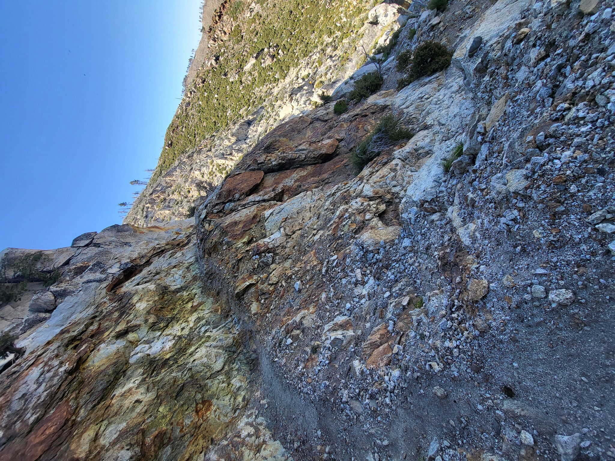 Napadá mě, že nevím, jestli jsem už popsal, co je můj nejlepší přítel na trailu. Je to aplikace Farout. Vlastně si to bez ní neumím představit. Je to plán pct na mapovém podkladu. Ukazuje přesně kde jsem, ale hlavně na trase jsou vyznačeny body, různě barevné, které ukazuji nějakou důležitost, zajímavost apod. Nejdůležitější jsou samozřejmě modré kapky, které značí vodu. Ke každému bodu, lze psát komentáře. Takže se ostatní hikeri informují, zda je např. danný pramen funkční. Ony totiž prameny mizí a vysychají a zase se objevují. Je to neuvěřitelná pomoc a bez toho si to ani neumím představit. Existuje ještě water report. Sdílená tabulka, kam hikeři zapisují jenom vodu, ale pro většinu situací je farout dostačující a hlavně ho člověk má pořád otevřený když kontroluje cestu.