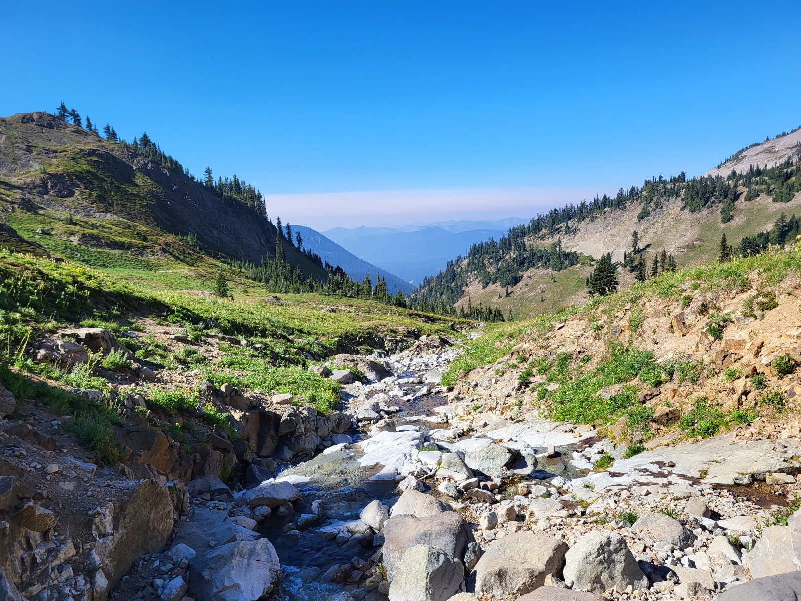 Chtěl jsem dát 25 mil, ale po 22 jsem dost hotov a hlavně kochání mě zpomalilo, takže kempuju Hidden spring. Jsem unavenej, ale šťastnej. Úžasnej den.