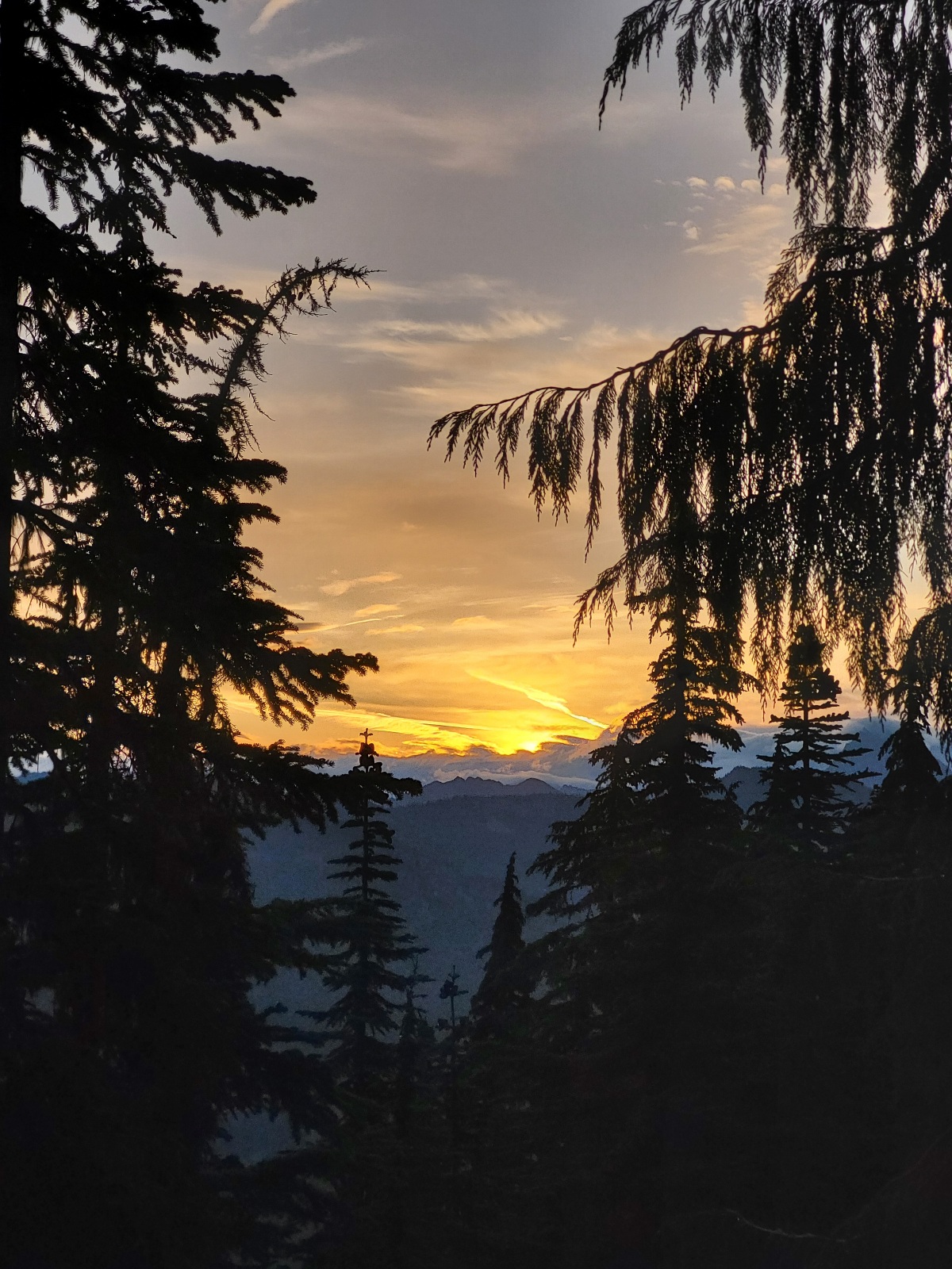 V noci chvíli pršelo a tak vstávám znovu do mokrého rána a s péřovku. Pobalím věci a vyrážím. Užívám si krásný východ slunce.