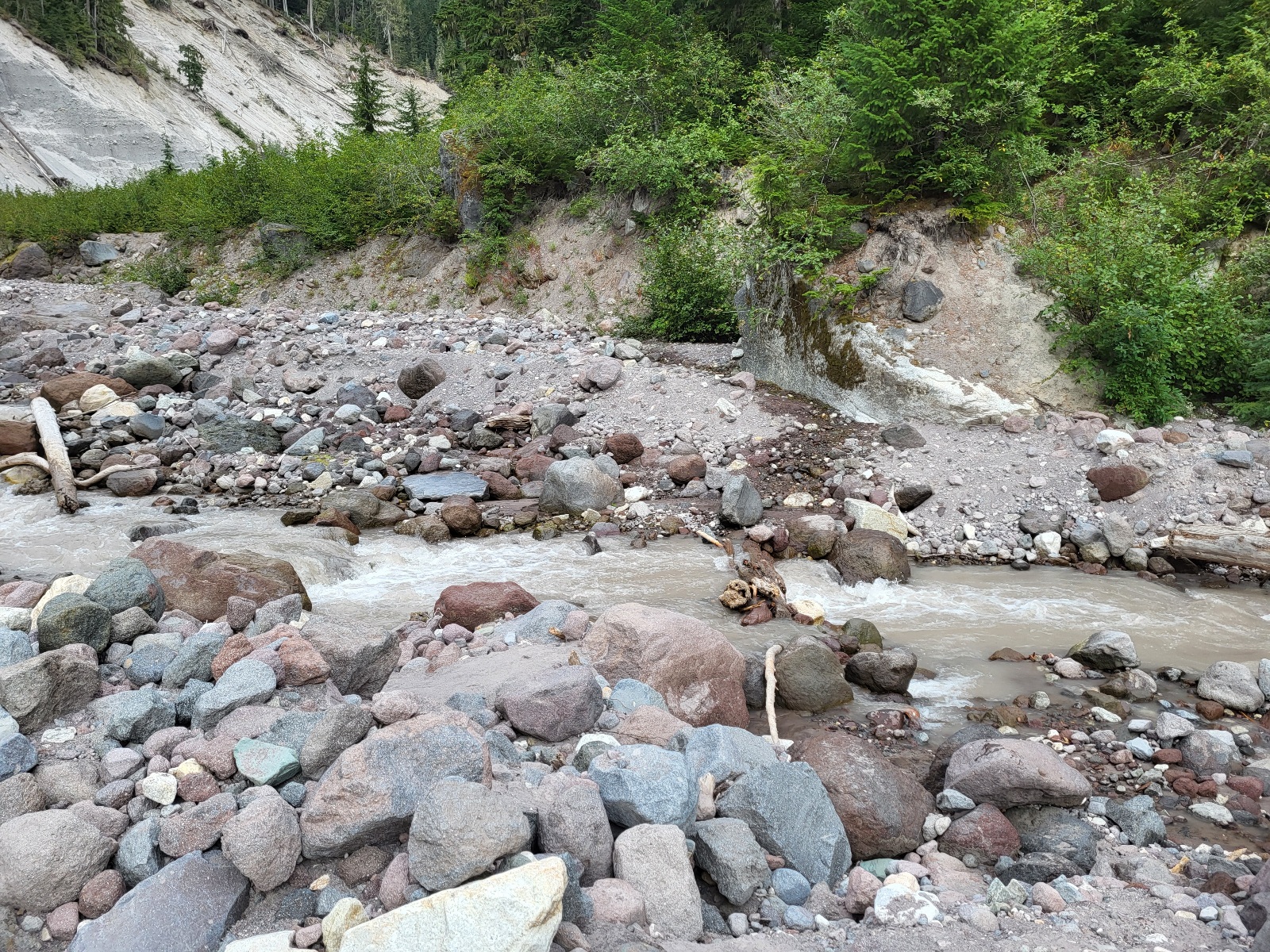 Scházím údolím, pak lesem a blížím se k řece. A nyní si vzpomenu na onen komentář. Přes cestu každou chvíli leží spadaný strom, ktery musím přelézat. Trail se ztrácí v křoviscích, přeskakuju potůčky, balancuju nad srázy na úzkých převisech. Řeku překonávám celkem na pohodu, ale přichází climb of the day.