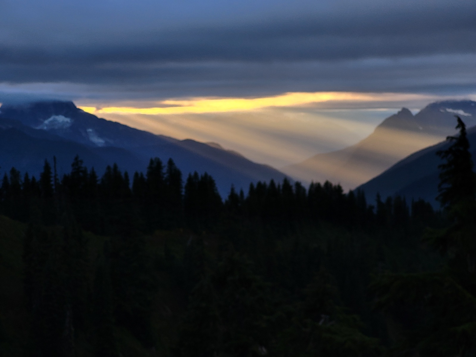 Asi dvě hodiny lezu do KOPCE, něco jako strmilák u Hřešihlav. Samozřejmě neustále přes cestu popadaný stromy. Začíná trochu mžít, ale nějak nemám sílu to řešit. Asi po 3 mílích sedám a vařím ramen, málo energie :)
