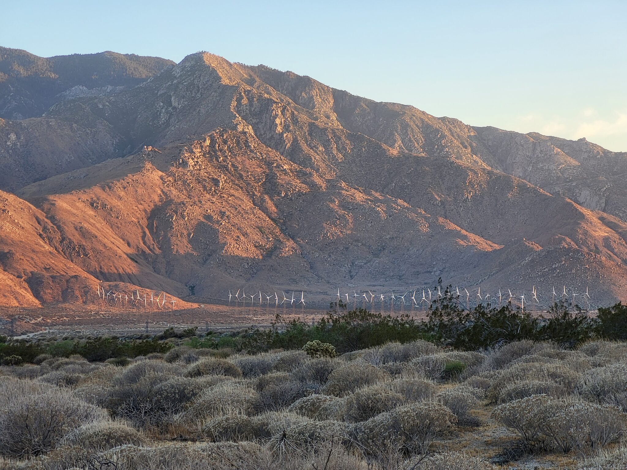 Řeším co dál. Píšu na skupinu, kde jsou a kde chtějí spát. Odpovídají, že už jsou u wind farm office. Kancelář lidí, co maji na starost elektrárny. No poteš. Skoro 10 mil. Už mám 19 v nohách, navíc z kopce a už jsem bolavej. Ale sám v tomhle hrozným větru nechci bejt. A tak nasazuju ostré tempo a valím dal.