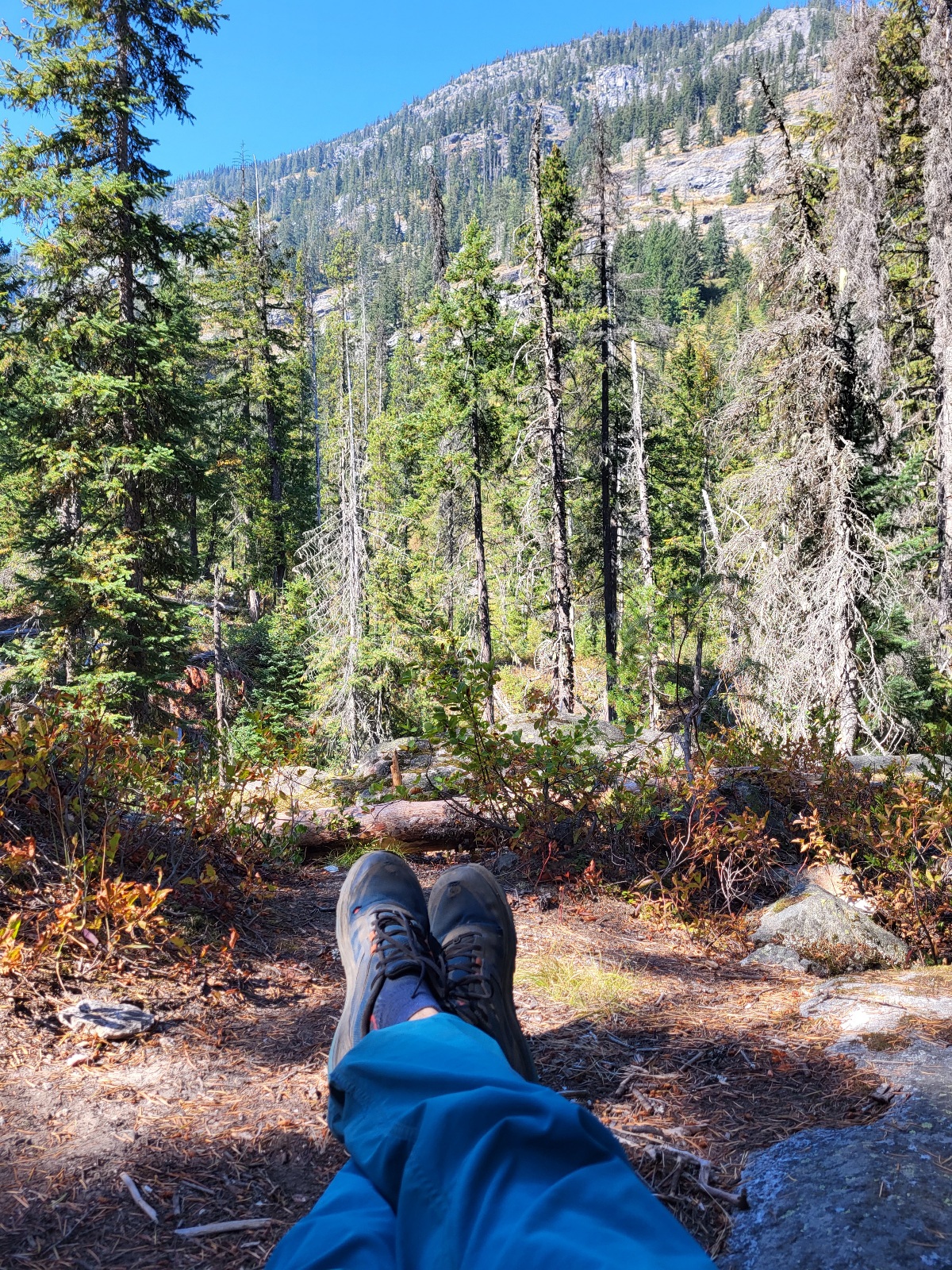 Ráno se budím v šest. A tak se potichu balím, abych nevzbudil ostatní a přesunuju se na terasu před obchod. Dávám ještě na chvíli dobít powerbanku, snídám skořicovou rolku a v osm mě už bus veze na trailhead. Tentokrát je to takový ten žlutý školní :) jak byl v batmanovi.