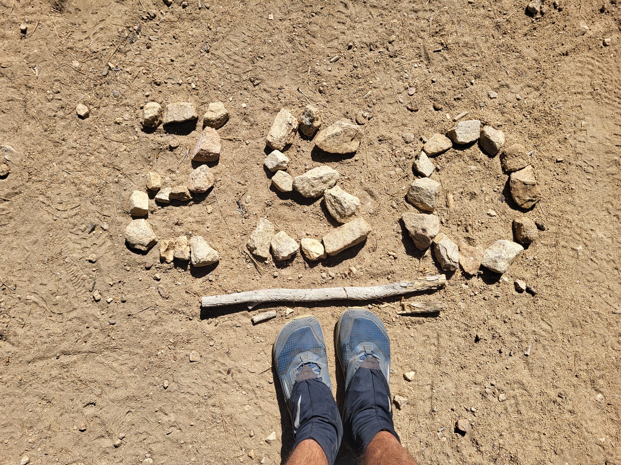 Po chvíli narážím na cestě z kamenů poskládáno 250. Chvilku přemýšlím a nojo. Už mám v nohách 250 mil.
