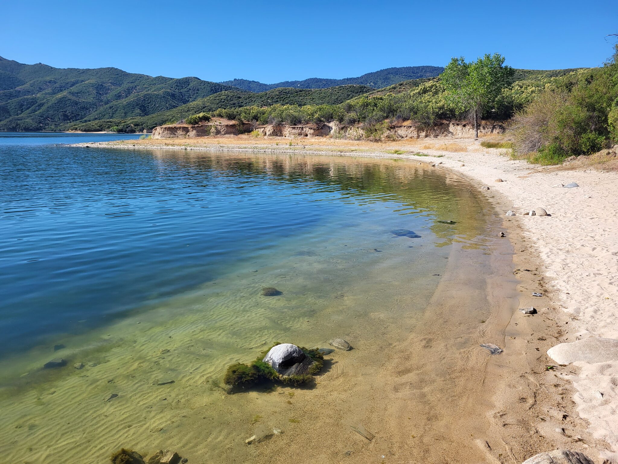 Valím to směr jezero Silverwood lake. Pak kolem něj a někde za jezerem na cca 10. míli je voda. Nabrat a pak někam popojít a stáhnout se ze sluníčka. Nabízí se piknic area cca 2 majle za vodou.