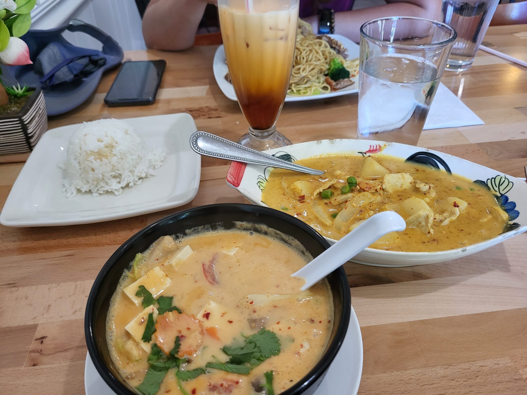 Po sprše a vyprání vyrážíme na pozdní oběd do thajské restaurace. Tom kha a yellow curry je pecka.