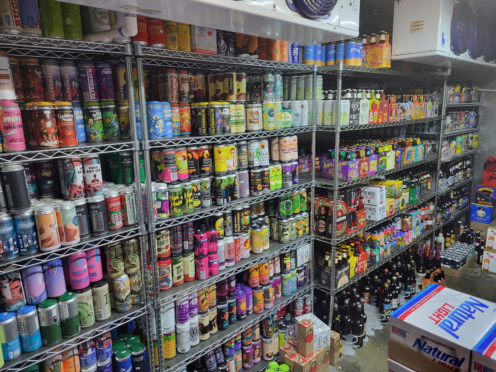 Sho jde koupit pivo do walmartu a já s martinou do liquere shopu. nejdřív si vybírám pivo z ledniček, ale majitel obchodu mě upozorní, ze větší výběr piva je v beer cave. Nechápu co tím myslí, tak mi ukazuje nápis a šipku. Otevírám dveře do království piva. Obrovský chláďak se spoustou piva. Nakonec volím 2x ipu.