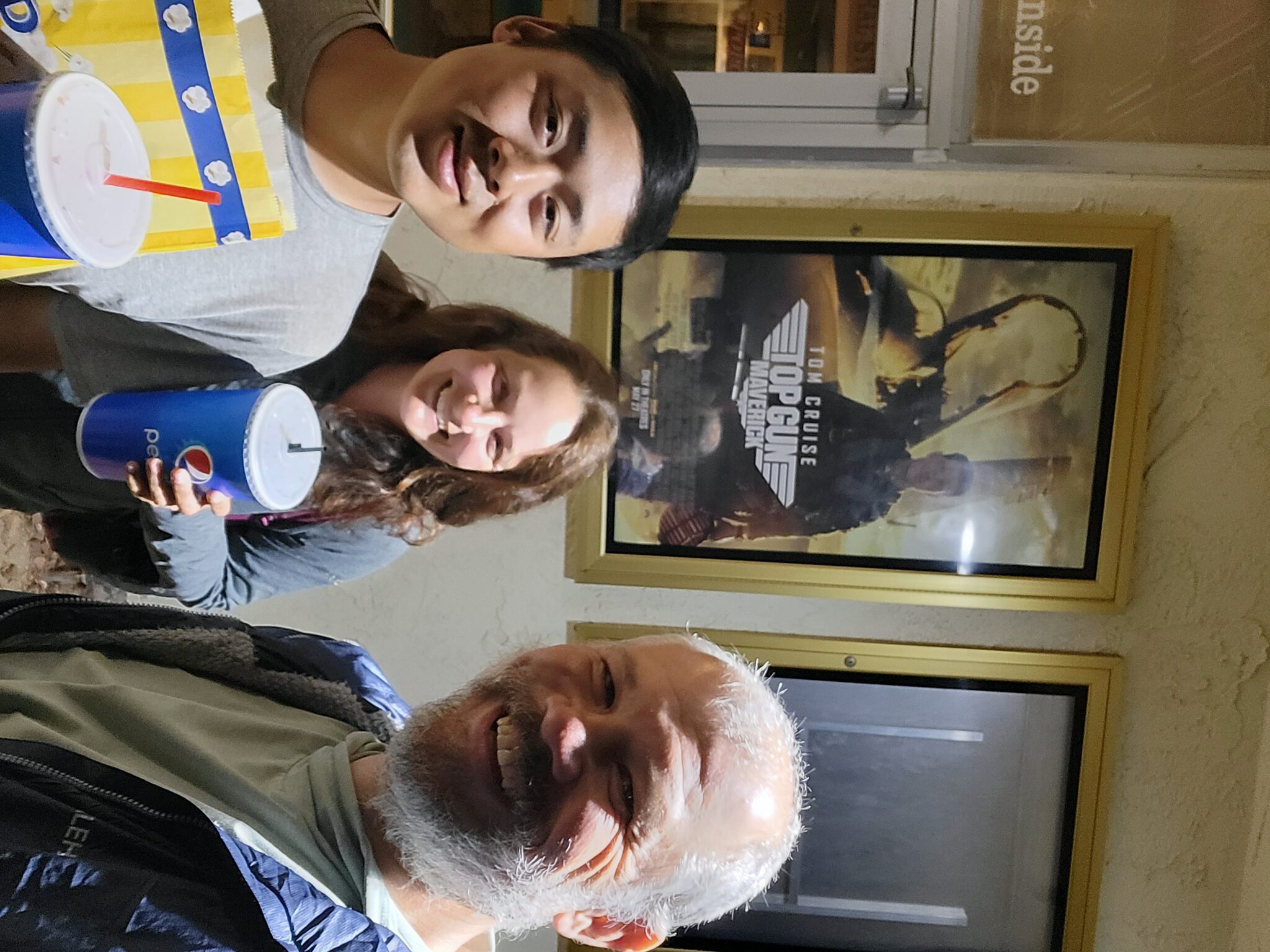 V 6:30 odcházíme do KINA! Na top gun 2. Neuvěřitelný, jsem v americkým kině, koupil jsem jumbo popcorn (pro Shoa) a jumbo dr.pepper. líbilo se.