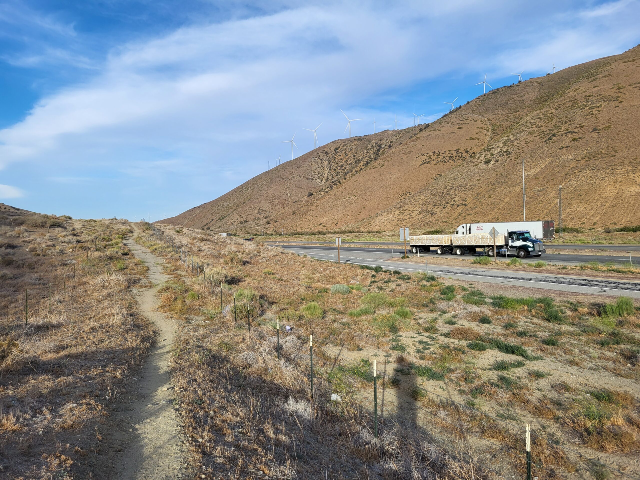 Pokračujeme dál. Klesáme k highway 58. Ja to nevěděl, ale Martina a Sho mě poučují, že přicházíme k místu, ze kterého v roce 1998? vyrážela Sheryl Strayed (podle jejíž knížky byl natočený film Divočina s Witerspoonkou). A skutečně, po té co přelezeme dálnici po mostě, trail vede podle ni a mírně stoupá a poznávám tu scénu z filmu.