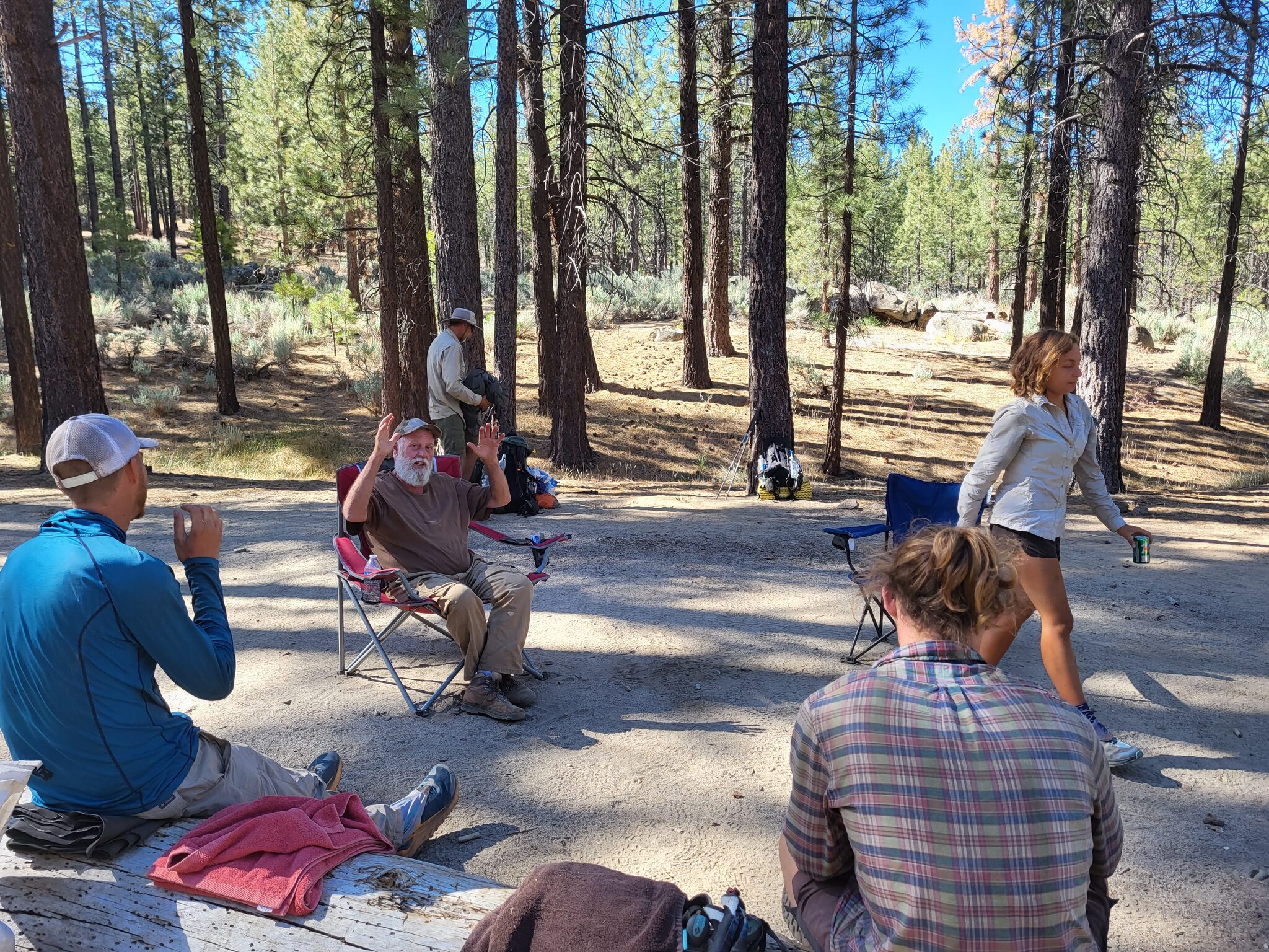 Když dorazíme na misto trail magicu, jsou tam všichni z nocoviště. Trail magic udělal Old yeller. Úžasný chlapík. Jezdí sem asi skoro každý víkend. Odpoledne je i teplé jídlo, ale nevadí. Beru si kafe a 7up a banán. Povídáme o vsem možném i o letadlech, je to fanda. Po půlhodině si beru ještě pivo a dávám do plechovky příspěvek. Asi za hoďku se zvedáme.