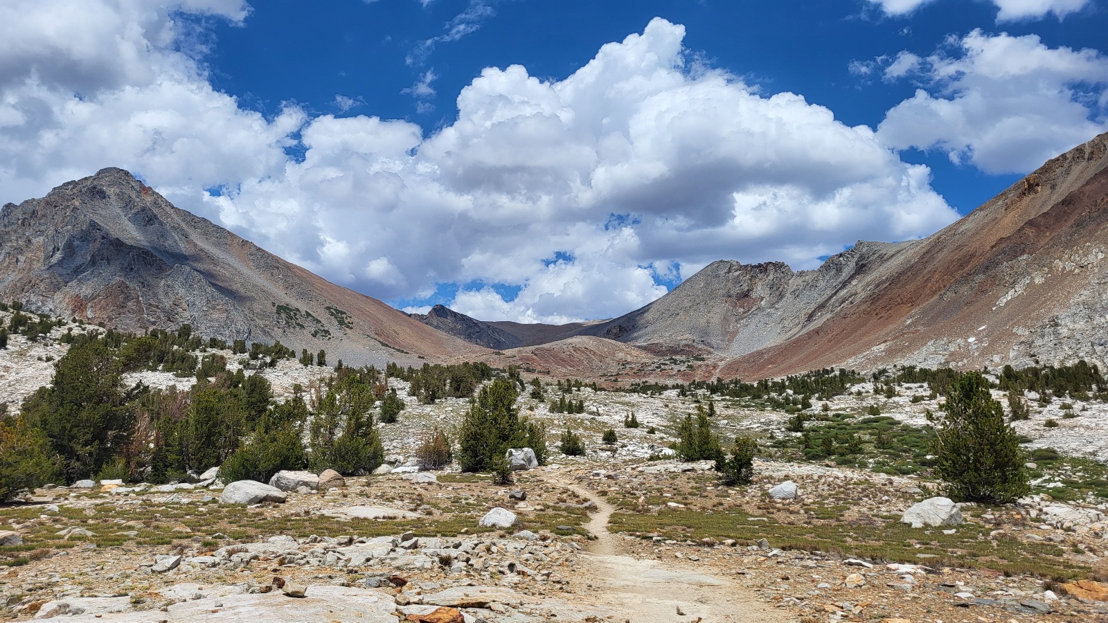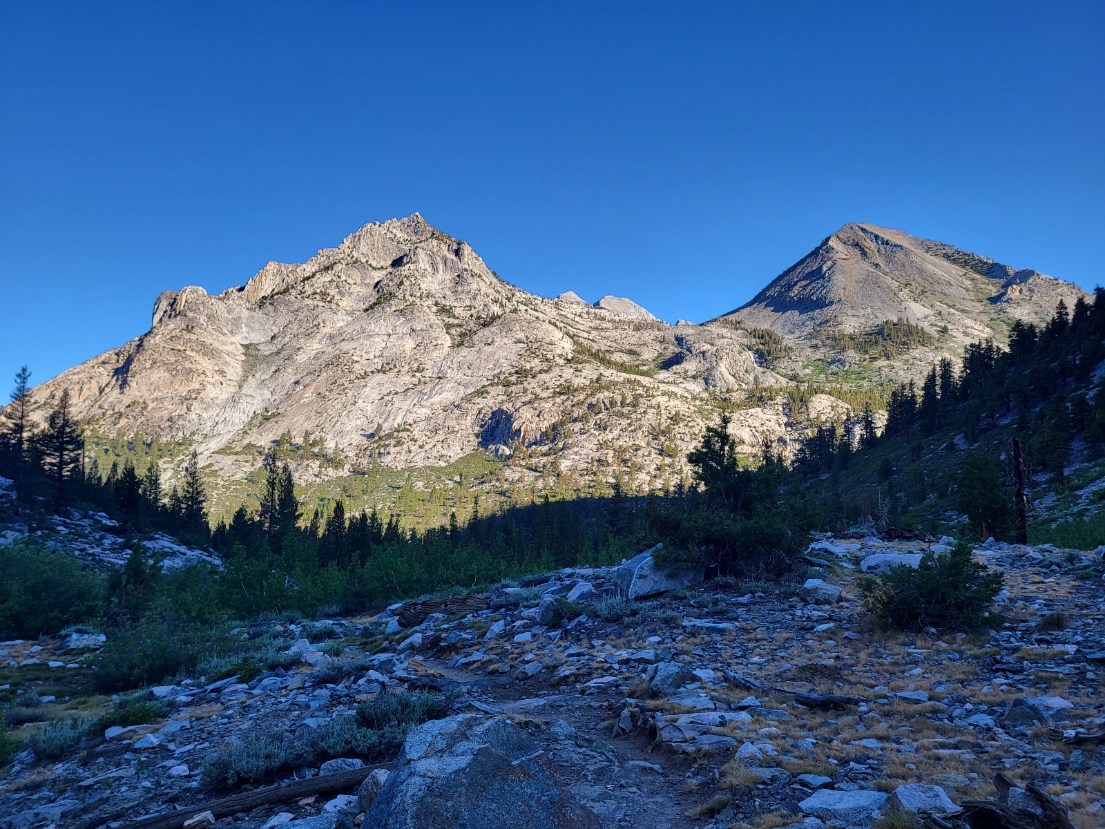 Asi za hodinu pokračujeme, ale je jasné, že dnes už to moc daleko nebude. Navíc SaH je dneska přesně 2 měsíce na trailu a chce spát na nějakém hezkém místě bez komárů a ne jako včera a tyhle jezera se jí moc líbí. Takže ujdeme už jenom něco přes míli a jakmile najdeme místo, které se jí líbí končíme. Já teda ještě kus popojdu, protože čistě prakticky nechci být na takovém výdrholci, který si vybrala, protože nejdůležitější je prý výhled, ale chci se schovat za jedním příhodným stromem před větrem.