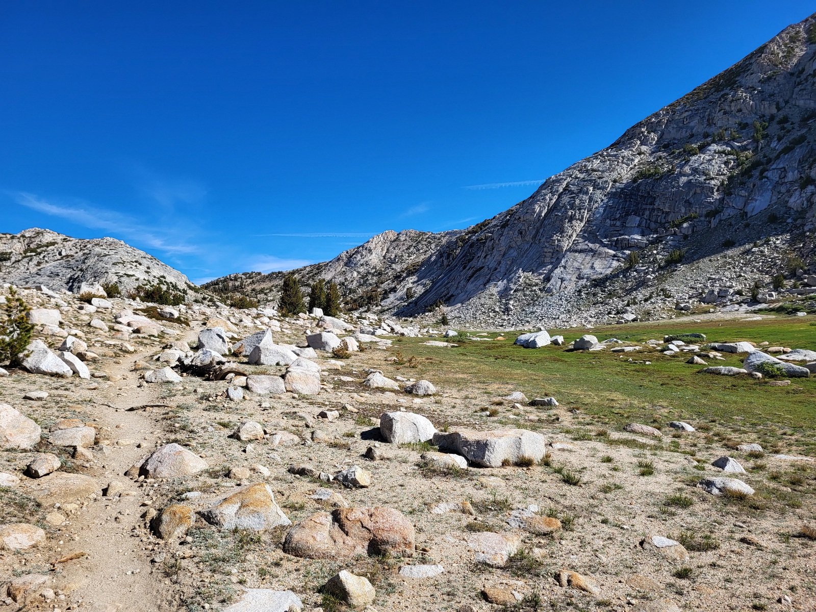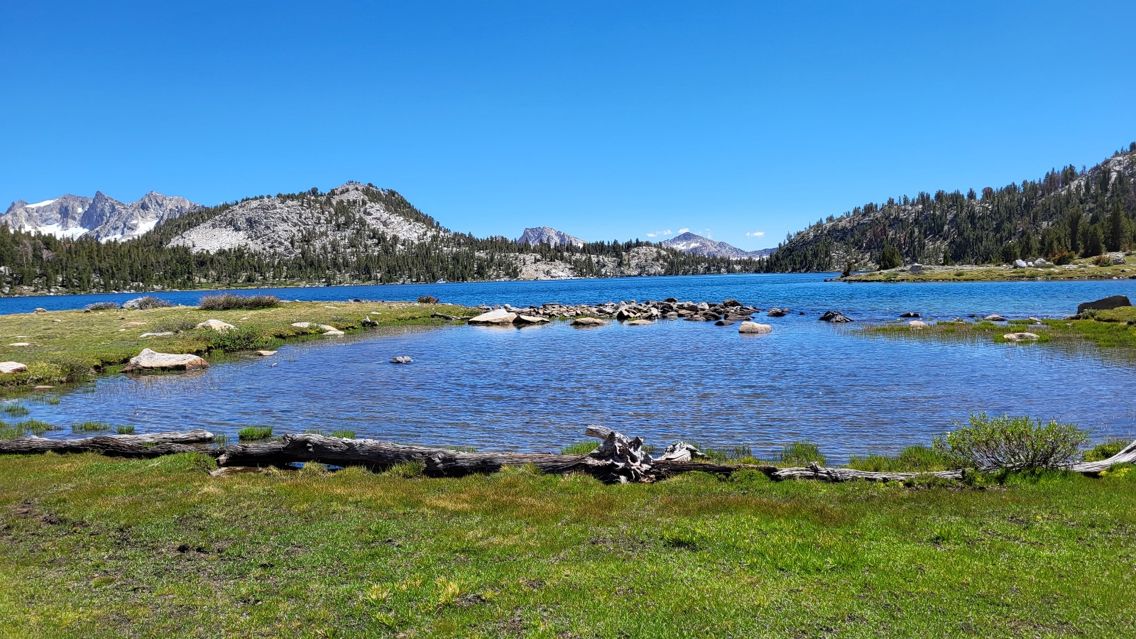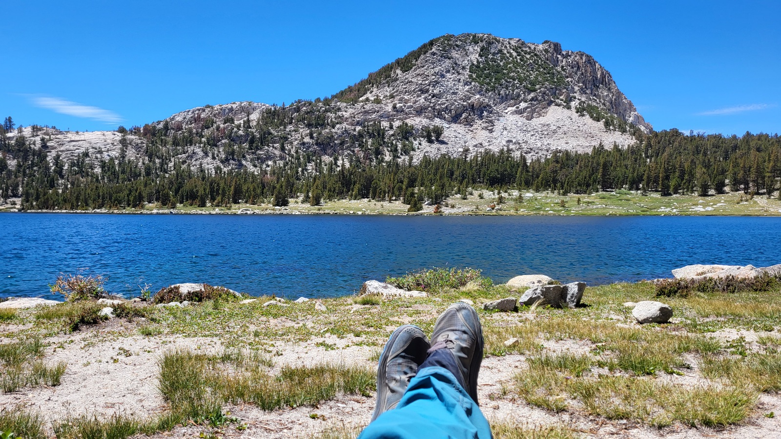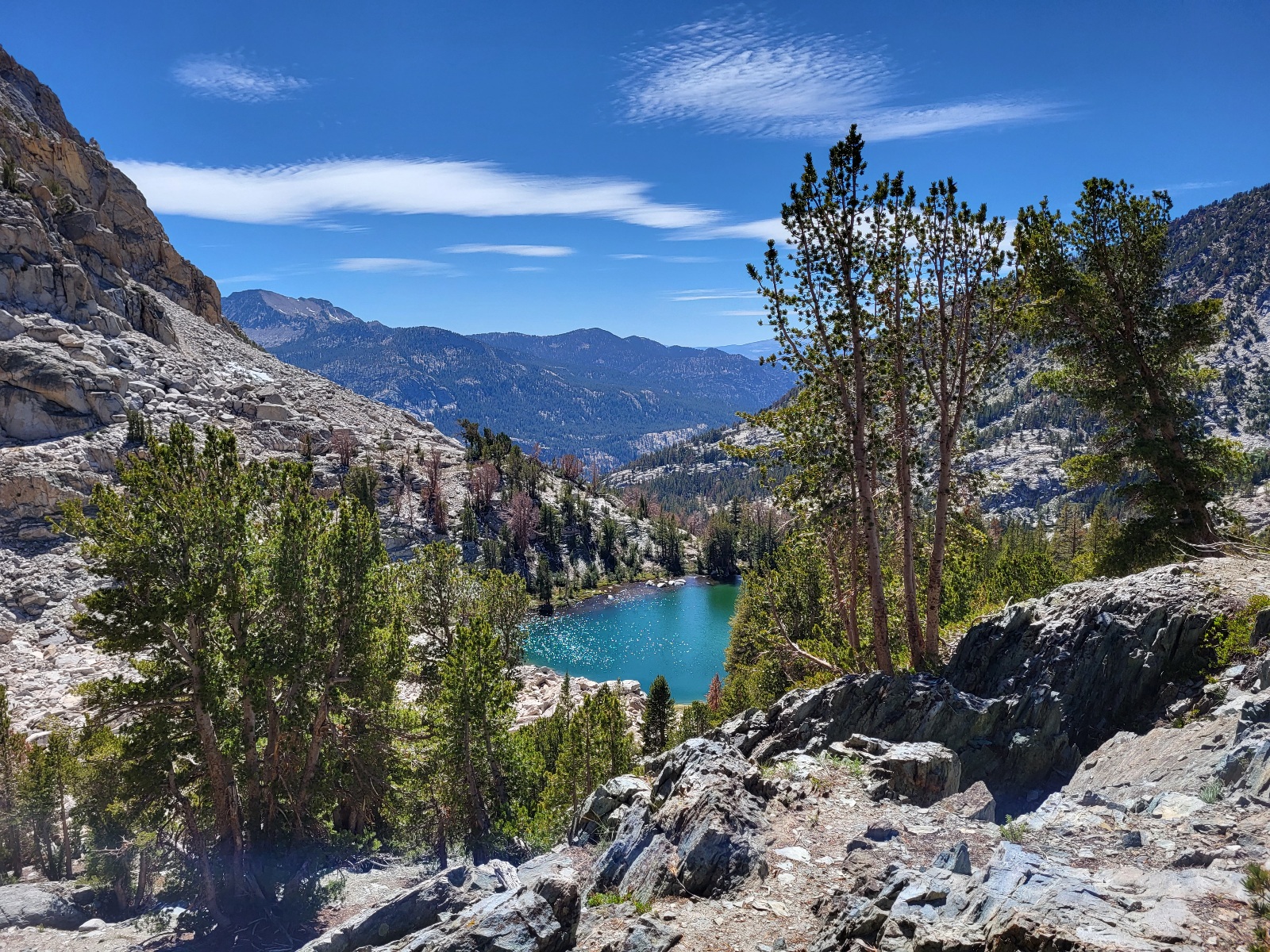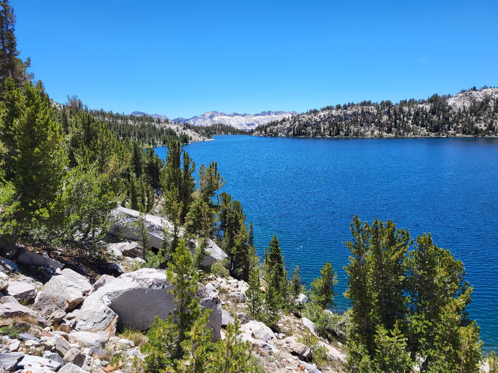 SaH mě dohaní před strmilákem k Virginia lake. Nahoru je to pěknej climb, chvílema jenom tak stojime a sípáme, ale jezero stojí za to. Zatím asi nejhezčí jezero v Sierra.
