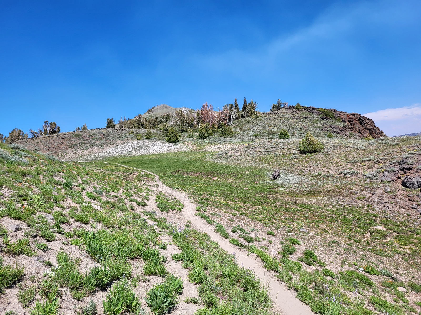 Po cestě je spoustu kytek. Je horko a některá místa úplně neskutečně opojně voní. Míjím i zvláštní kopec, který vypadá jak hromada kamenů.
