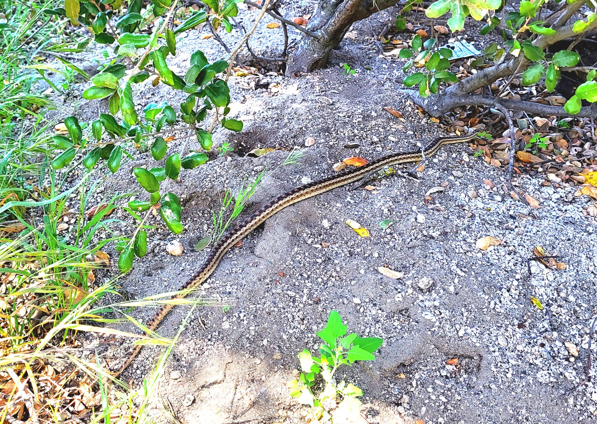 Valím po cestě a uuuuups, tentokrát jsem na něj opravdu nešlápl tak asi o 5 cm. Ufinky. Naštěstí (asi/doufám) to zase není jedovatý 🐍. Hubený a rychlý a zdrhá to. Takže to stíhám a snažím se to vyfotit.