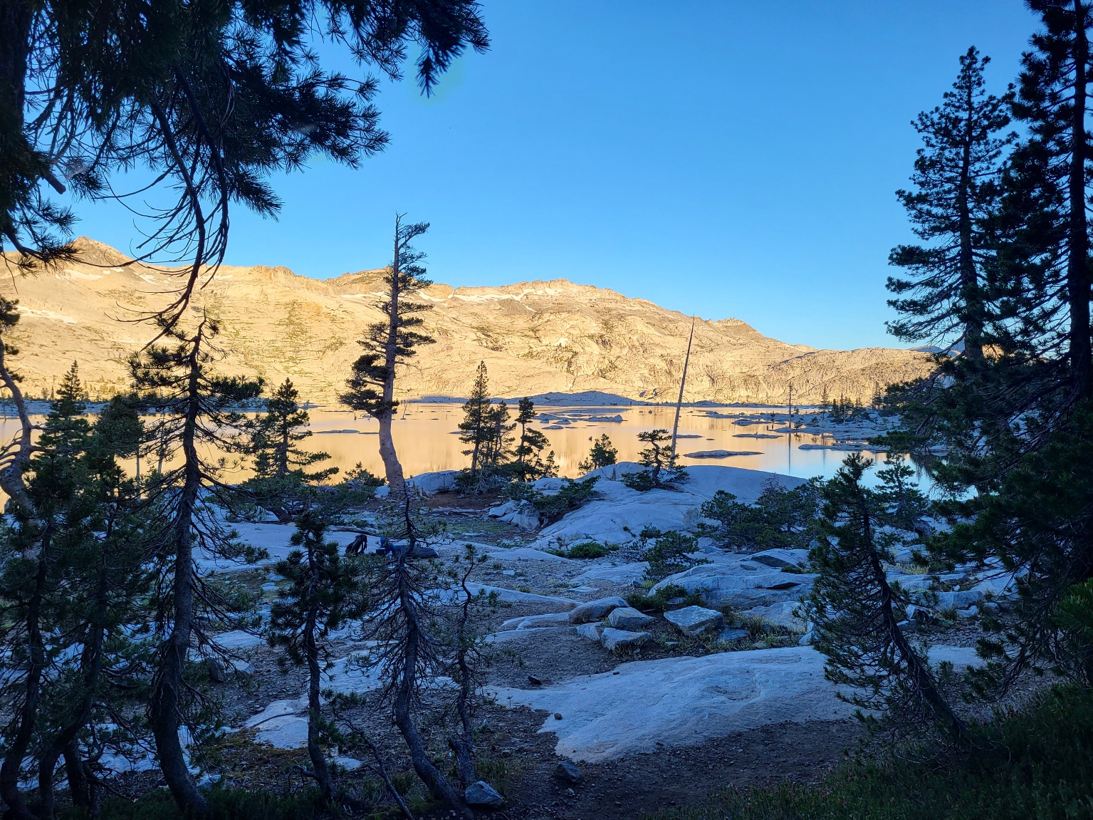 Rano vstávám před šestou. Venku už se to rojí, takže zabalení ve stanu. Venku jsem notně poháněn, ale je krásný světlo a jezero je krásný, tak dělám pár fotek.