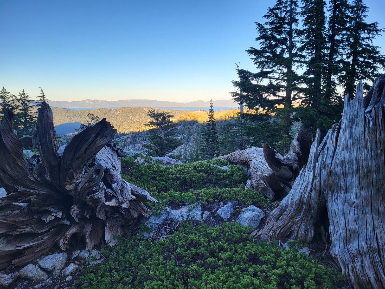 Narážím na Adama. Chvilku jdem spolu a kecáme, ale jakmile přijde kopec, přestávám mu stačit a loučíme se. Funím do kopce. Nahoře je skiareál a lanovka. Dobírám vodu i na umytí a docházím do kempu. Není tu vůbec nikdo a je to krásné misto s výhledem na lake tahoe.