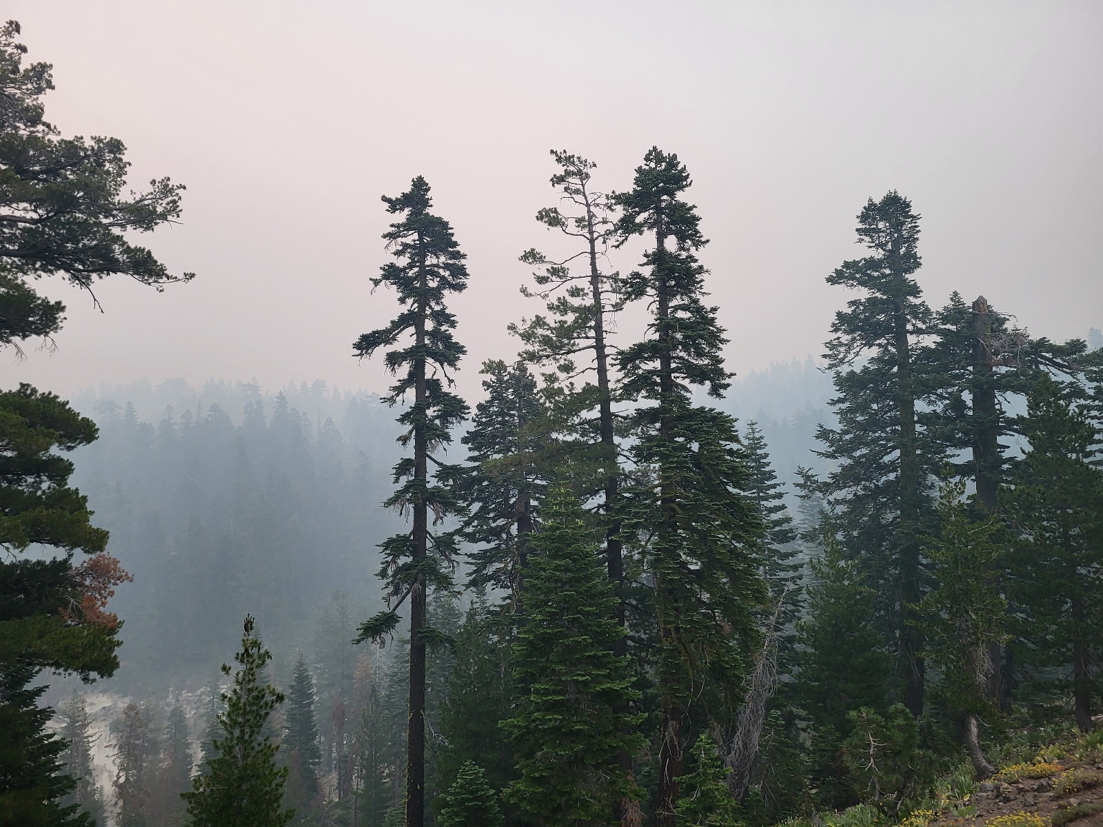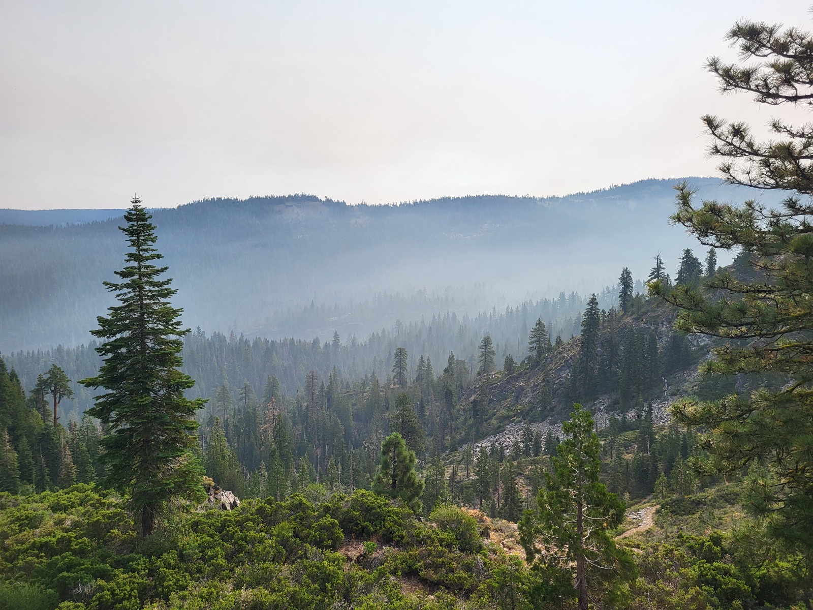Je to mnohem hustší a intenzivnější kouř, než prve v Yosemitech. K snídani cookies s vodou a mizím. Snad správným směrem. Species už je přede mnou a Sun Shine s přítelem me předhánějí po chvili. Dolezl jsem totiž na kopec a mobil, který našel signál, se rozcinkal upozorněníma.