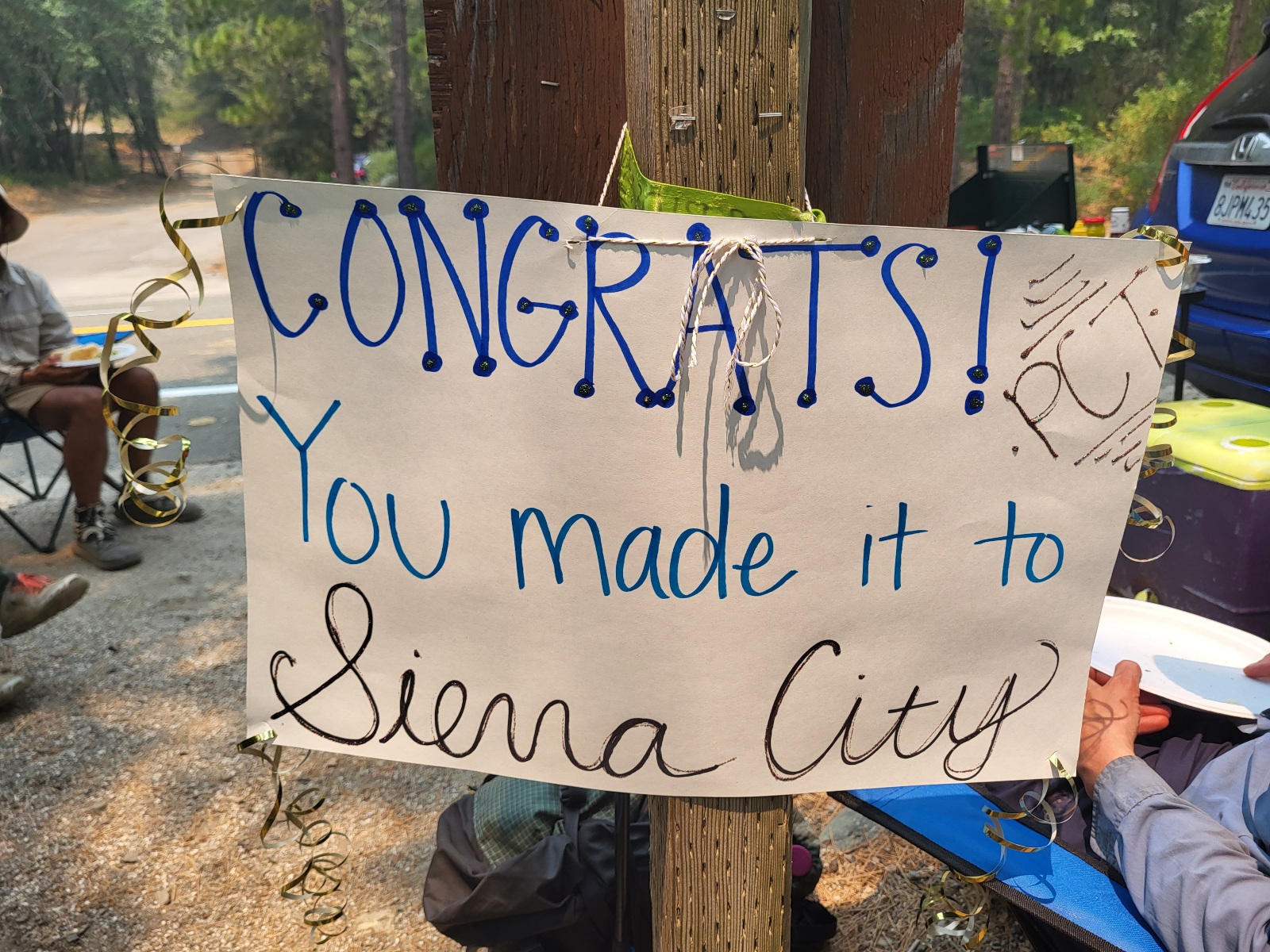 Ano, trail magic a já před chvílí jedl!!! Nicméně mi to nezabrání zdlábnout hotdog se salátem a grepovou limonádou.