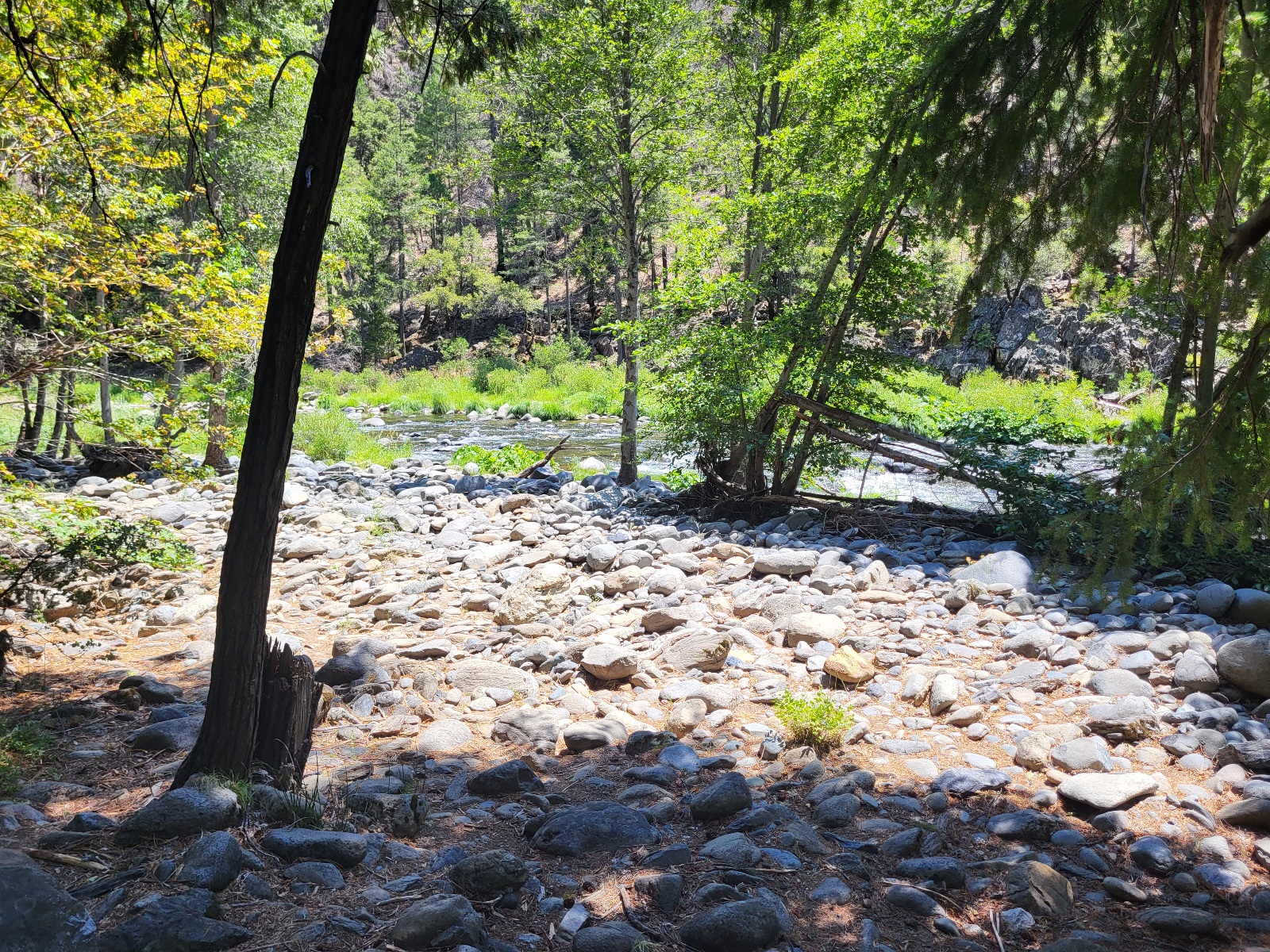 Jdu z kopce dolů, poslouchám Egypťana a je už šílený vedro. Za několik mil dorazím k řece a plánuju voraz. Když tam dorazím, vyperu úplně propocené hoodie a ponožky, opláchnu se v řece a jdu vařit kaši k obědu. Dávám do ní Spam. Prý kultovní lunchmeat v americe. Ja to neznal a je to… Lunchmeat. Chilli to vylepšilo :)