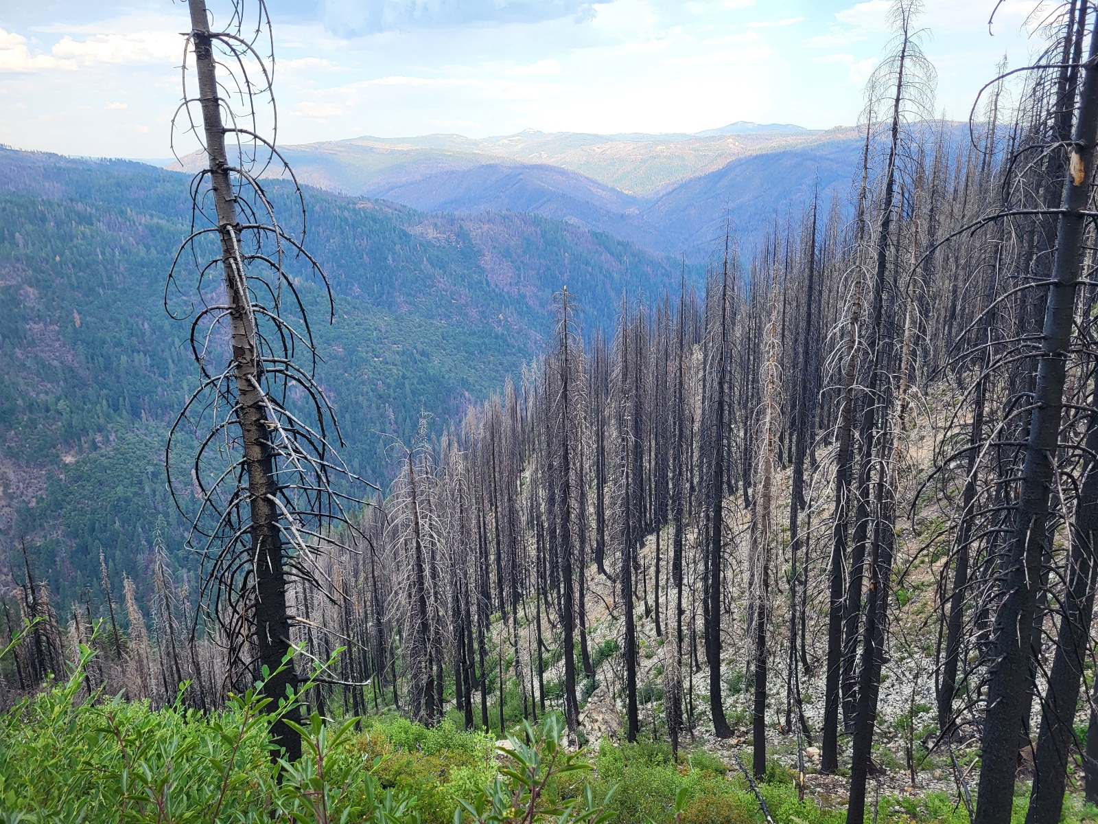 V podstatě hned od začátku jdu shořelým lesem. Je to smutný pohled a říkám si, že takhle nějak to teď bude vypadat kolem Hřenska:(