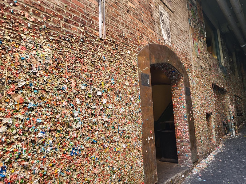 Pak jsem šel projít na chvíli Pike market. Po cestě to beru okolo gum wall. Vlastně je to nechutý :)