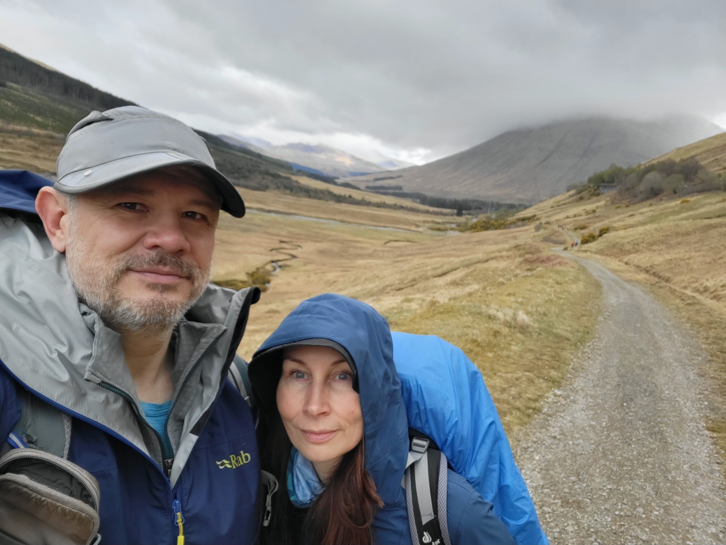 Povídáme si a tak ten déšť nakonec prezijem a za chvili jsme v Bridge of Orchy.